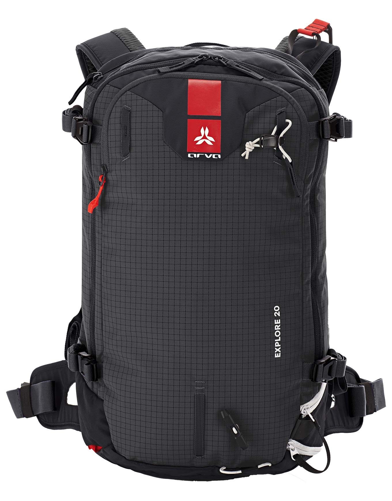 Sac à dos Arva Explore 20 Black, 20 L écoresponsable en polyamide recyclé certifié GRS et Bluesign®, avec ceinture ergonomique, dos ventilé, rangements sécurité, peaux, skis, snowboard et hydratation intégrée pour sorties alpine en journée.