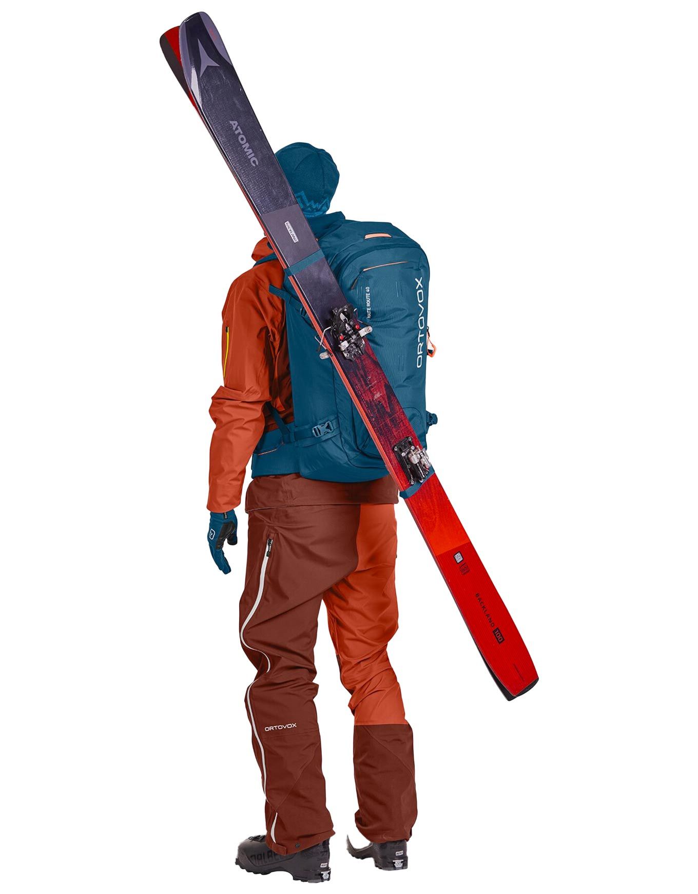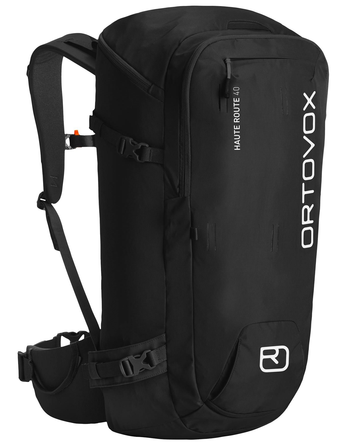 Sac à dos de ski de randonnée Ortovox Haute Route 40 Black Raven, 40 L, accès avant/arrière, poche sécurité, porte-skis, casque, hydratation, dos O-Flex-2 ergonomique.