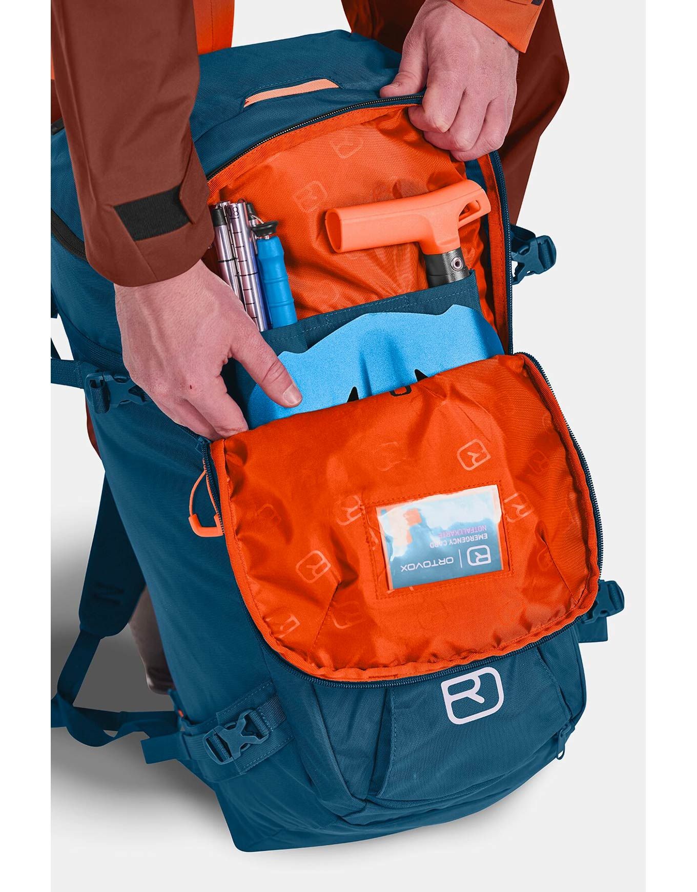 L’accès au compartiment principal s’effectue aisément par l’avant ou l’arrière, facilitant considérablement vos sorties en montagne. Une poche dédiée au matériel de secours d’urgence est intégrée, accompagnée de multiples équipements pour vous permettre d’affronter chaque situation en étant parfaitement équipé(e).