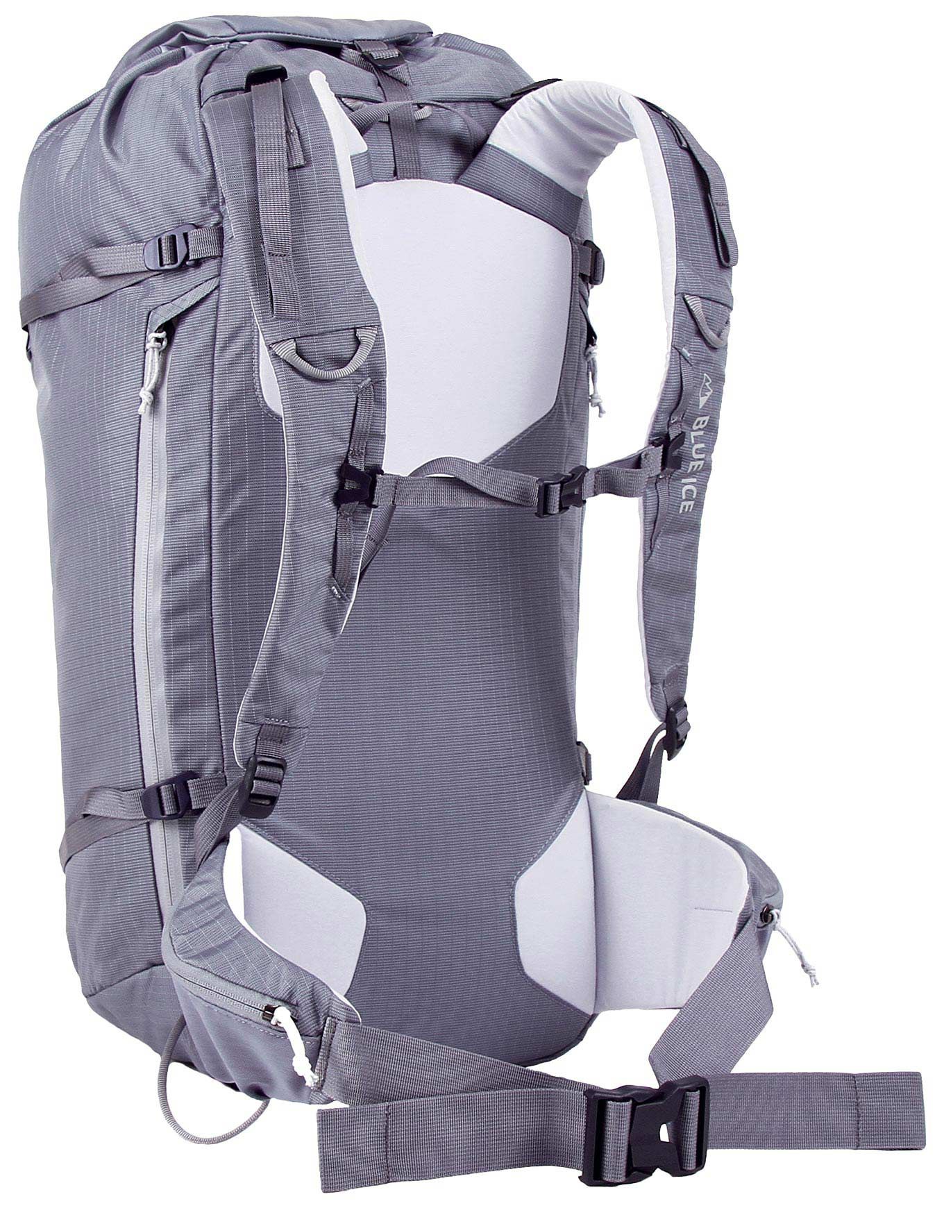 Sac à dos Blue Ice Kume 32 Flint Stone, 32 L pour l’alpinisme et le ski technique, avec poche avalanche, porte-skis, porte-casque et ceinture à profil bas; structure dorsale amovible, textiles ultra-résistants et imperméables, 200 g plus léger que le Kume 30.