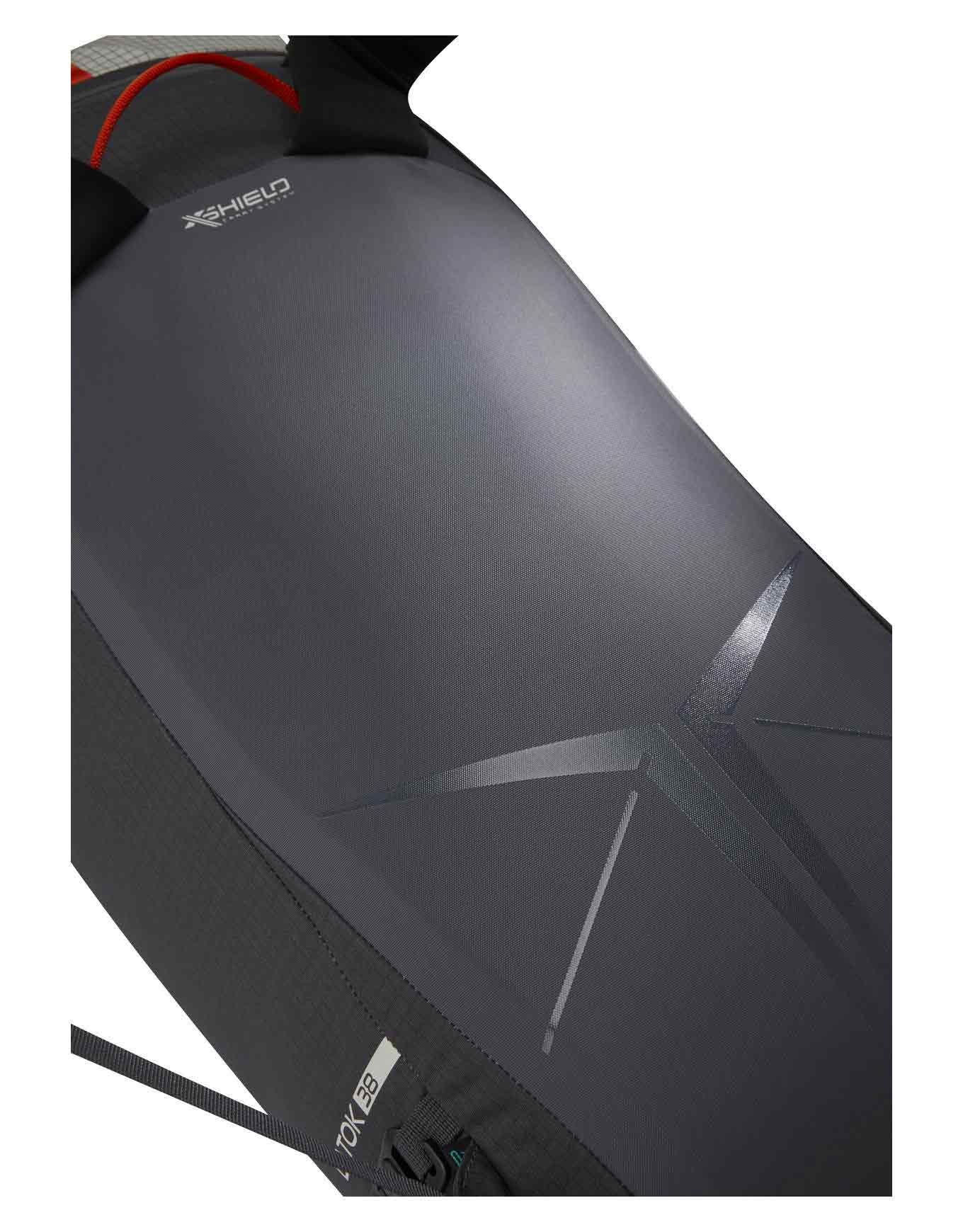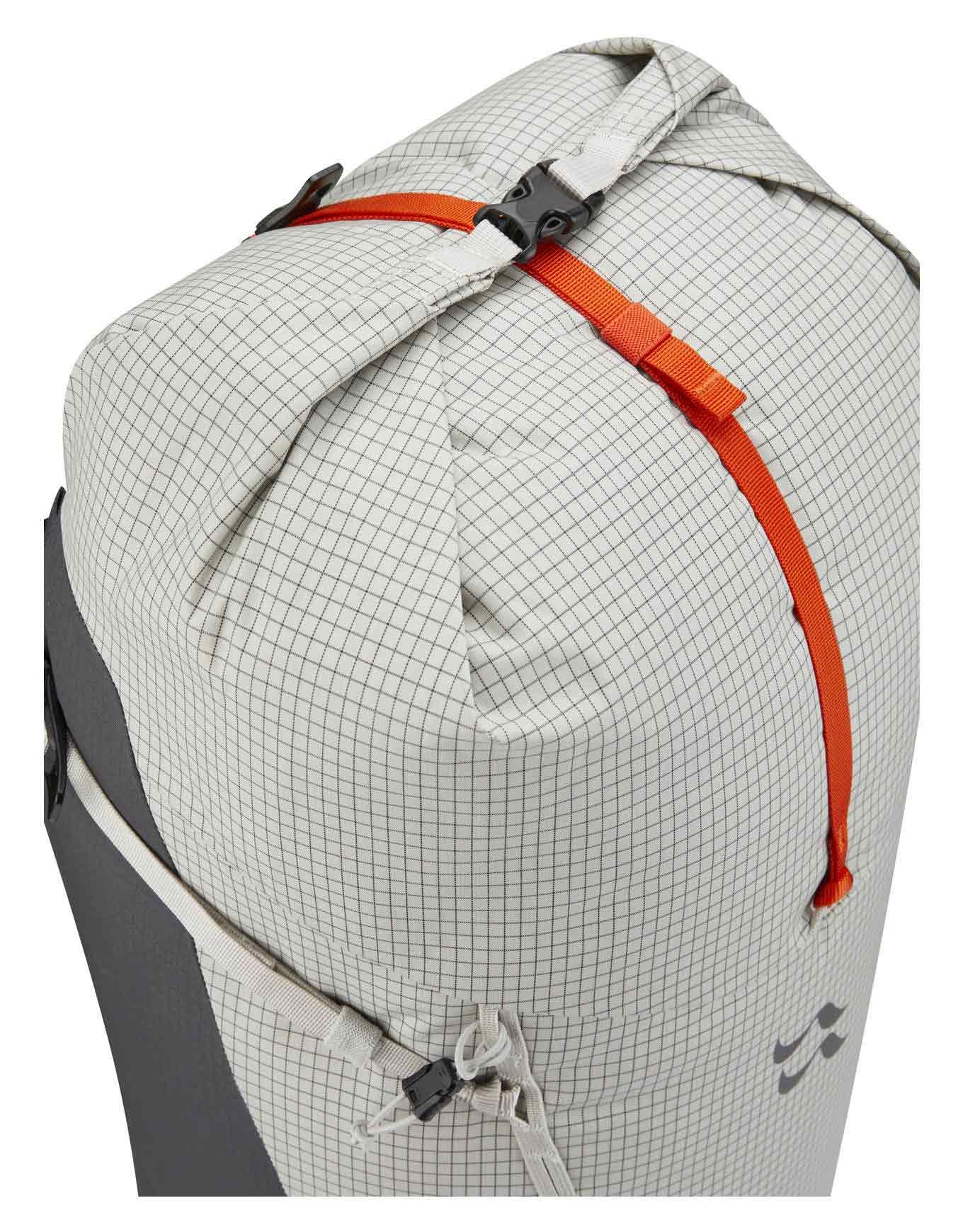 Une résistance exceptionnelle aux UV, aux déchirures et à l’abrasion est garantie par la construction en nylon Cordura®, renforcée par du ripstop Spectra® et une finition étanche HydroShield. Un ajustement précis et une grande liberté de mouvement sont offerts par le système dorsal X-SHIELD™, tandis qu’un confort optimal est assuré par les bretelles en mousse double densité, même au cours des ascensions techniques.