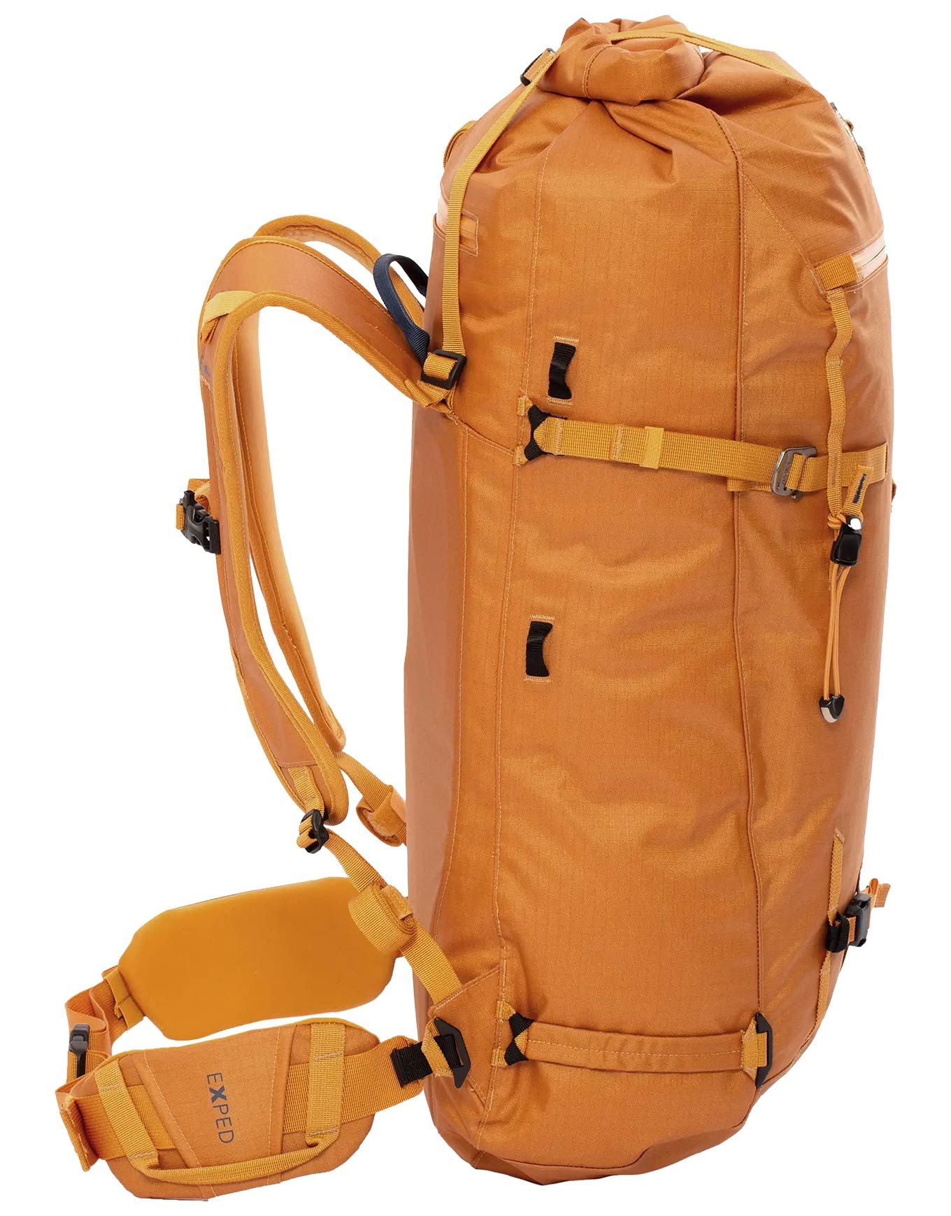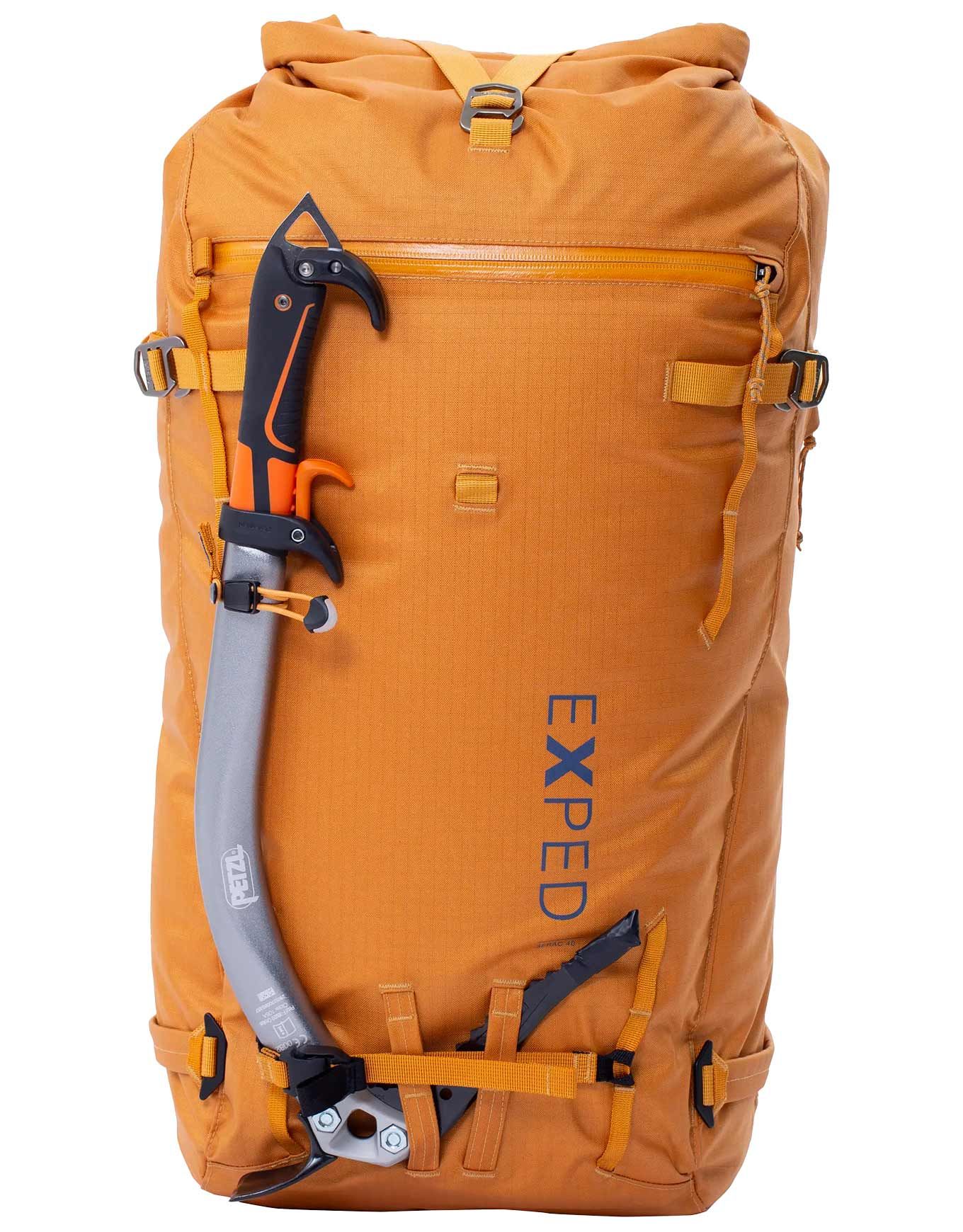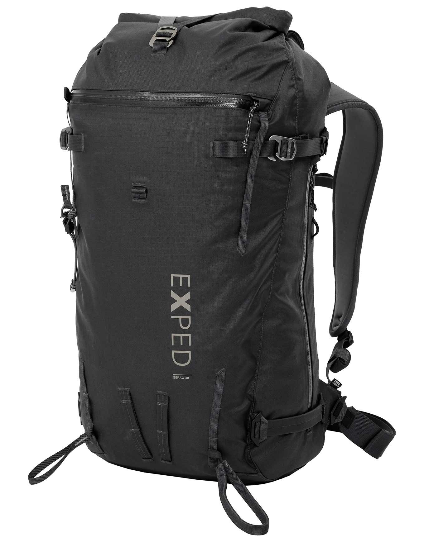Sac à dos d’alpinisme Exped Serac 50 Black, résistant aux intempéries en nylon ripstop thermosoudé, volume 50 L réglable par fermeture à enroulement, compartiment latéral, poche frontale, dos mousse rembourré, ceinture et sangles amovibles.