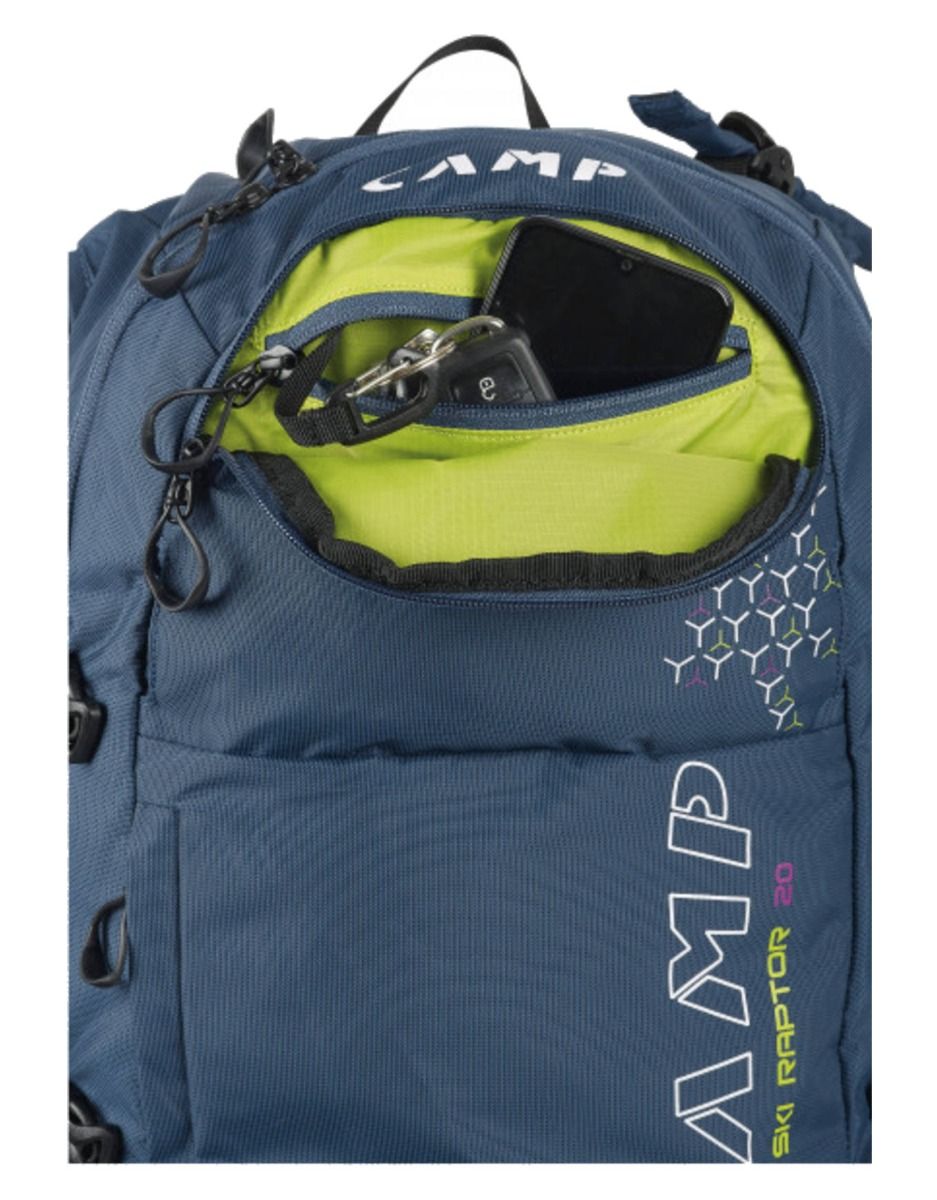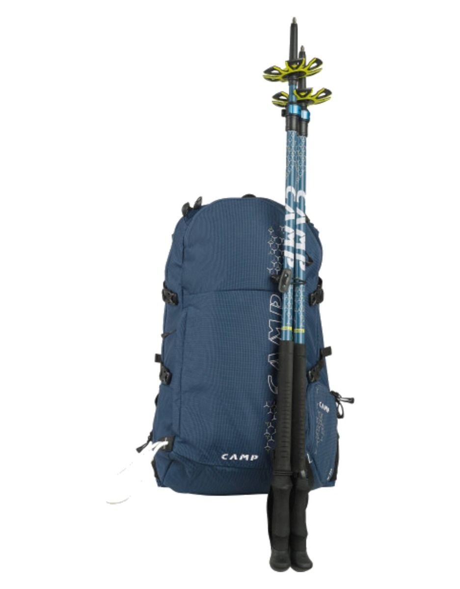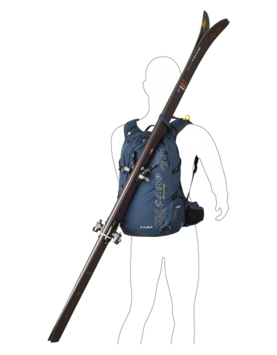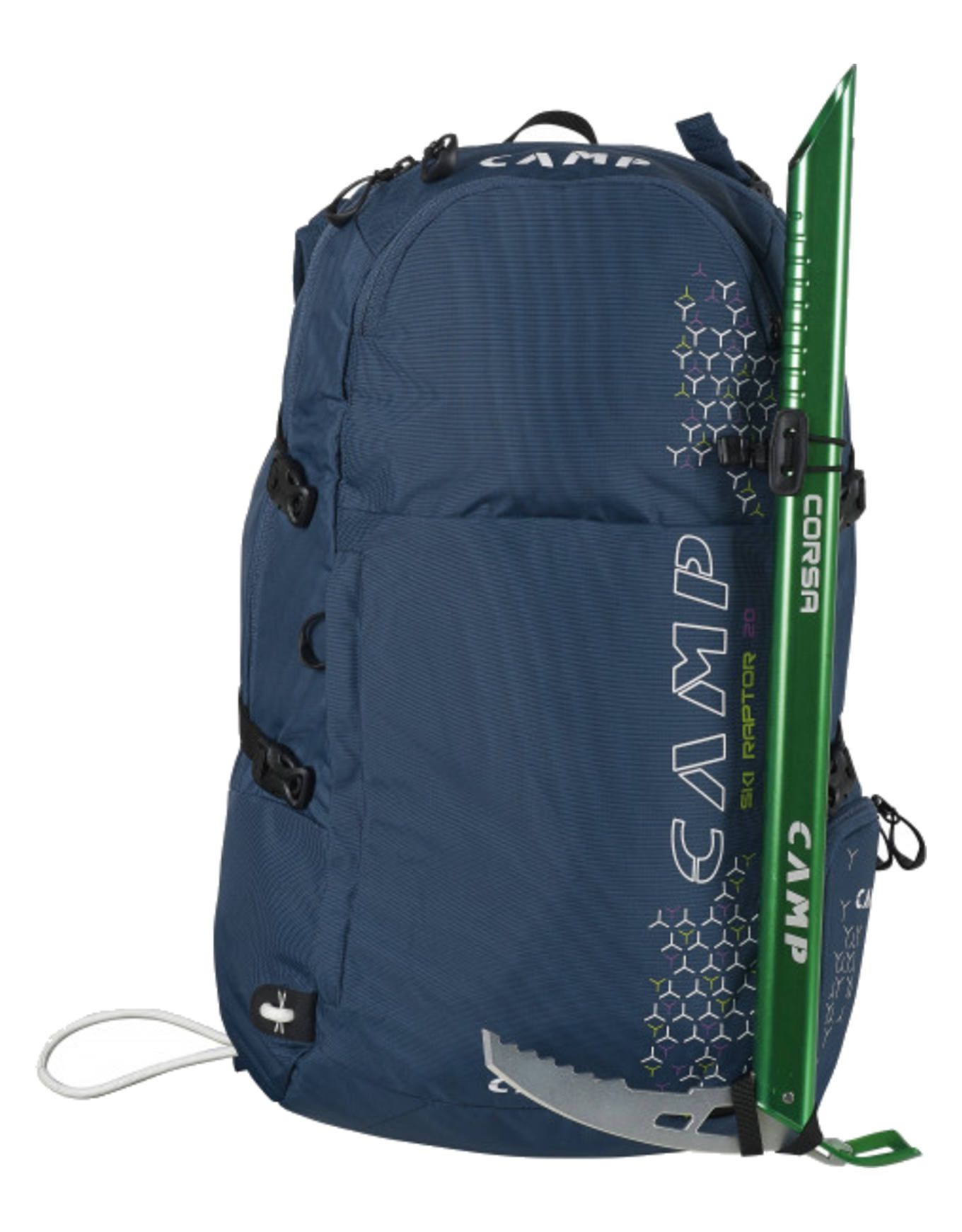 Sac à dos de ski de randonnée Camp Ski Raptor 20 Dark/Blue, 20 L, avec porte-skis X-PRESS, fixation Tubular Rewind Holder réglable et poche crampons accessible sans ôter le sac.