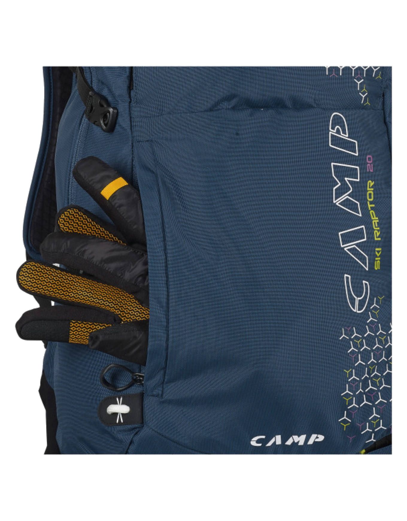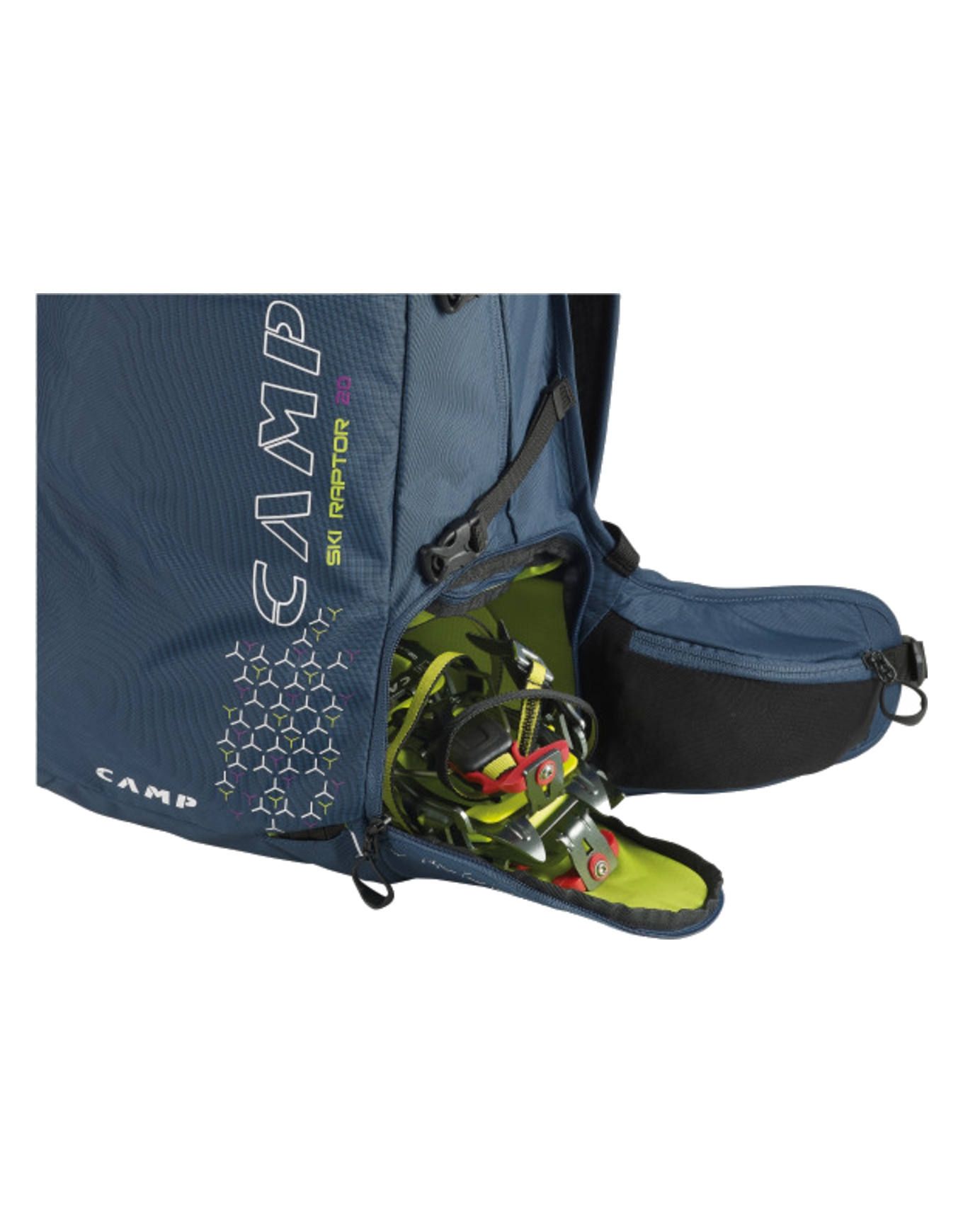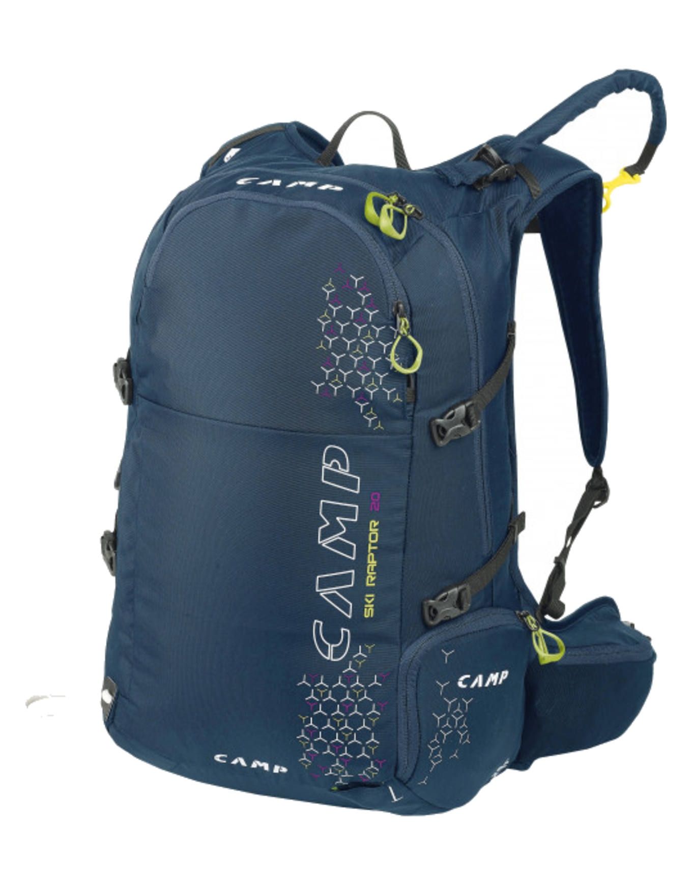 Sac à dos de ski de randonnée Camp Ski Raptor 20 Dark/Blue, 20 L, avec porte-skis X-PRESS, fixation Tubular Rewind Holder réglable et poche crampons accessible sans ôter le sac.