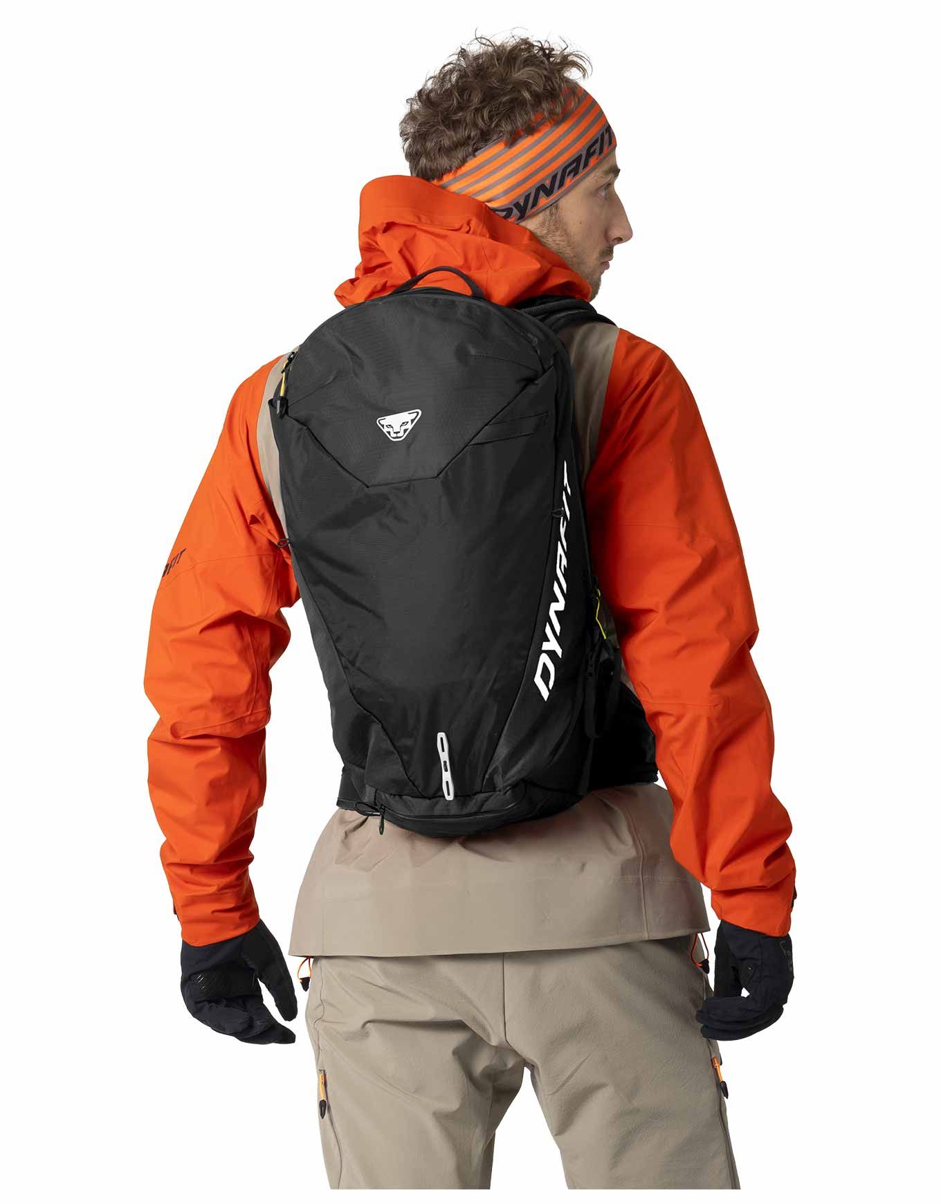 Sac à dos Dynafit Speed 24 Black Out, 24 L/755 g, spécial ski de randonnée : dos Airmesh réglable, bretelles respirantes, attaches ski, porte-casque et piolet, rangement sécurité/hydratation.