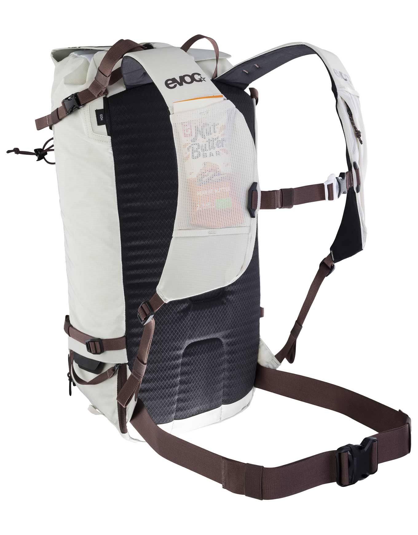 Sac à dos Evoc Summit 20 Sand 20 L pour ski de randonnée : système Neutralite répartissant le poids, compartiment avalanche, poche latérale rapide pour peaux/crampons, 50 % polyamide recyclé sans PFAS.