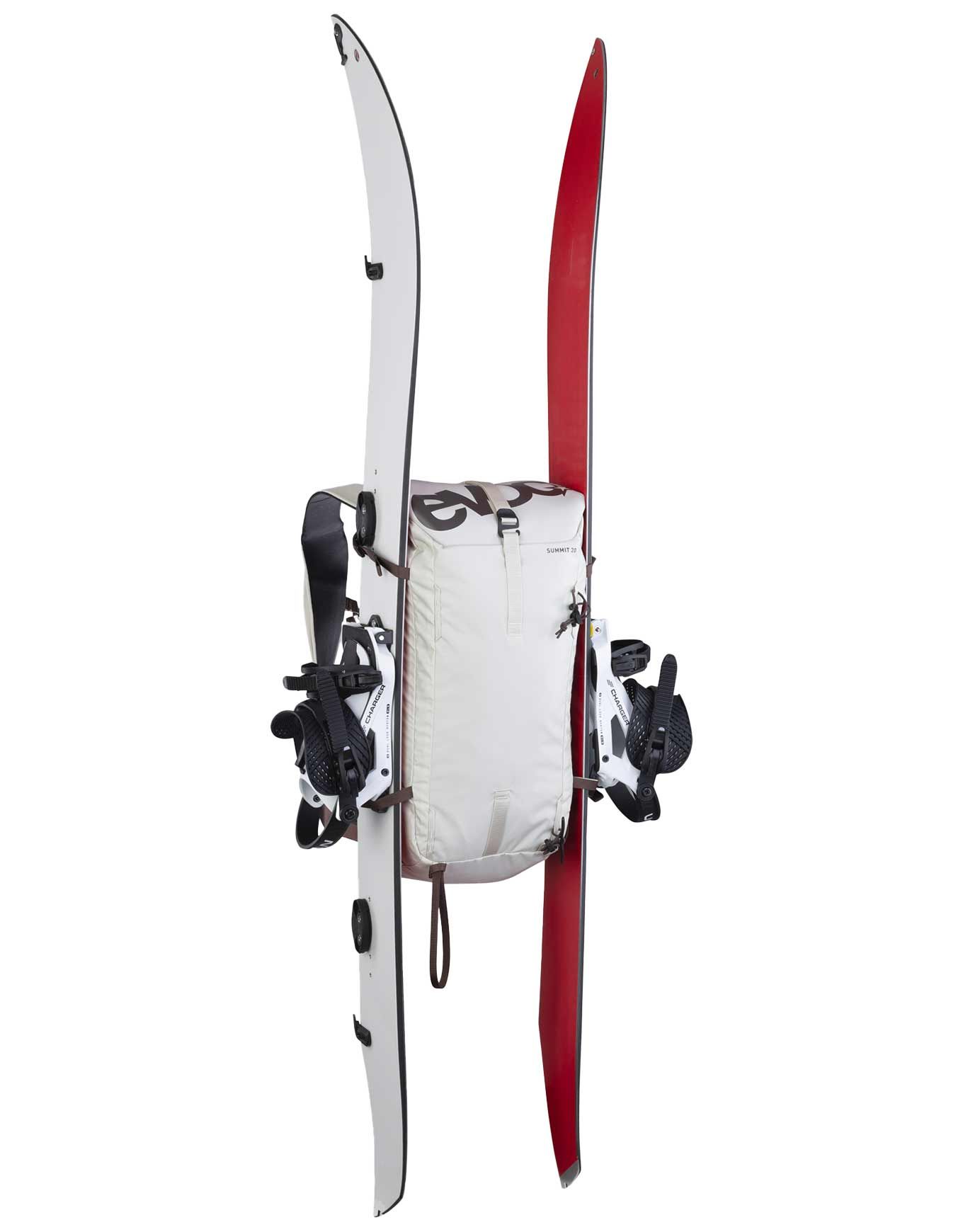Ce modèle, plus petit que son grand frère le Summit 30, a été pensé pour pouvoir emporter avec vous des piolets, des skis ou un snowboard. Par ailleurs, le support pour piolet peut aussi porter des bâtons pour une polyvalence accrue. Enfin, le porte-casque est inclus : vous pourrez ainsi ranger votre casque dans le sac pendant les pauses déjeuner ou le transporter plus aisément une fois de retour au parking.