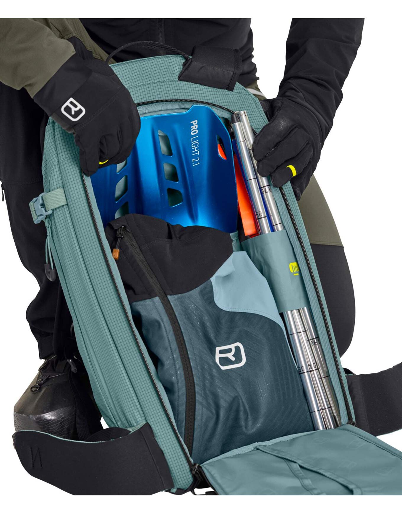 Un compartiment séparé pour le matériel de sécurité permet d’emporter l’essentiel et d’y intégrer un piolet léger, tandis que les multiples autres supports accueilleront votre casque, des bâtons, une corde et bien d’autres éléments encore.