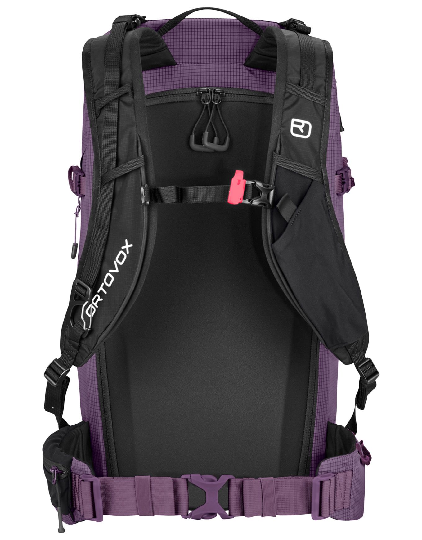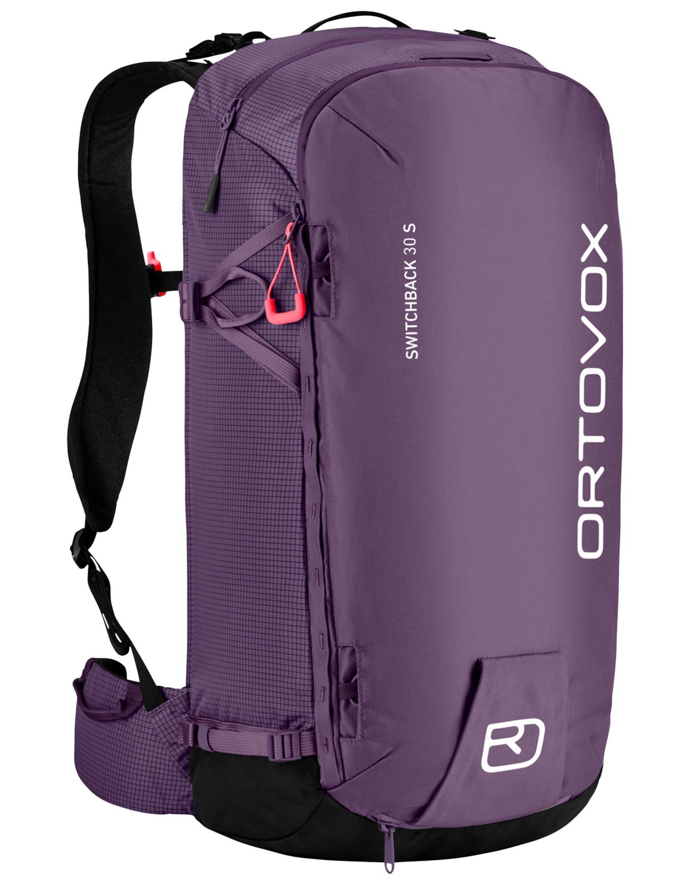 Sac à dos de ski de randonnée Ortovox Switchback 30S Wild Berry, version S pour morphologies plus petites, 30 L, système dorsal FULL CONTACT LIGHT BACK répartissant la charge et sangles de compression ajustables. Poche sécurité dédiée, accès crampons, peaux, porte-skis et casque sans ôter le sac.