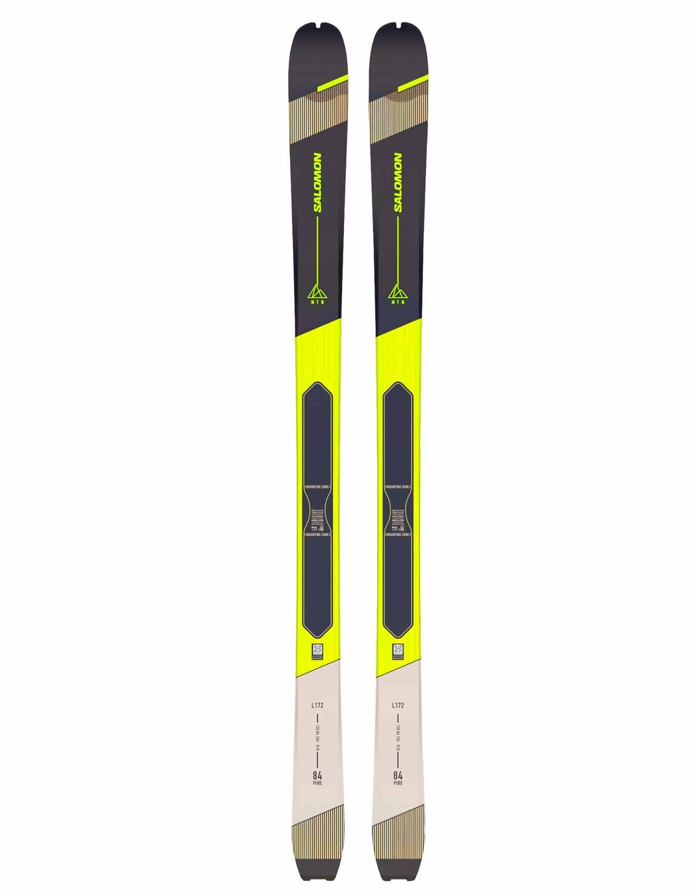 Salomon MTN 84 PURE, ski de randonnée homme 156 cm 2 200 g, allie légèreté en montée et tenue nerveuse en descente grâce à son noyau peuplier, amorti liège et patin 84 mm.
