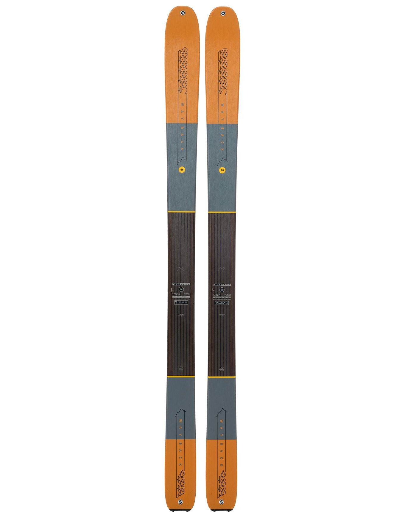 K2 Wayback 98 2026, ski de randonnée polyvalent homme, allie légèreté, accroche fiable et stabilité sur toute neige grâce à la technologie Titanal Touring et construction Paulownia renforcée carbone/fibre.