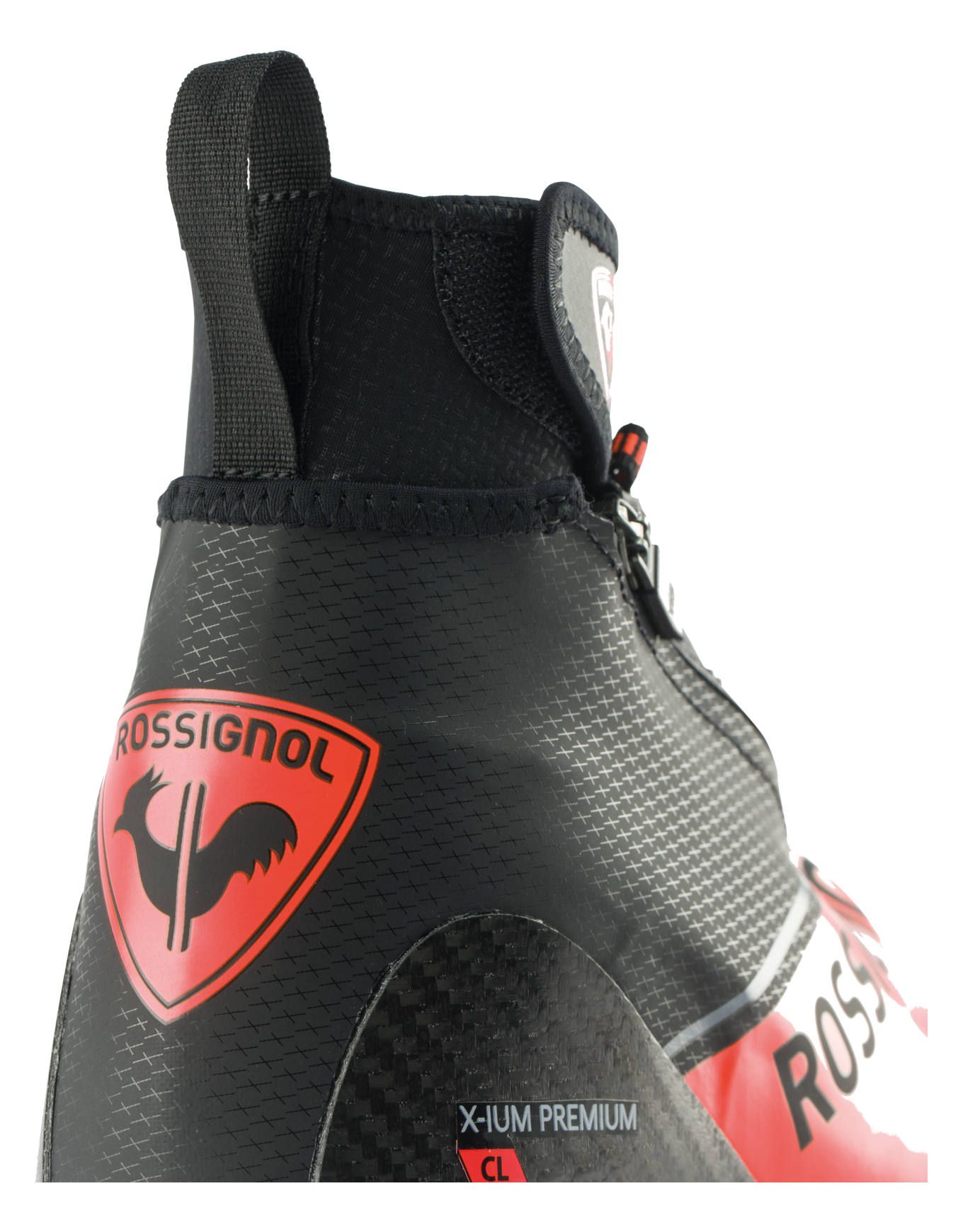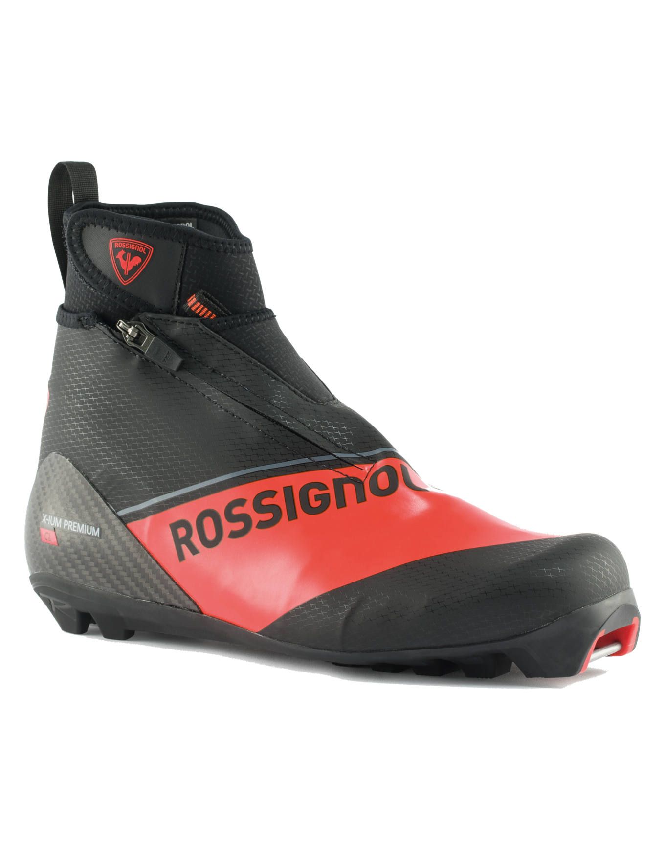 Chaussure de ski nordique classique Rossignol X-Ium Carbon Premium Classic, ultra-légge et conçue pour la course, avec renforts carbone, semelle Expert Classic et chausson thermoformable pour précision et confort.