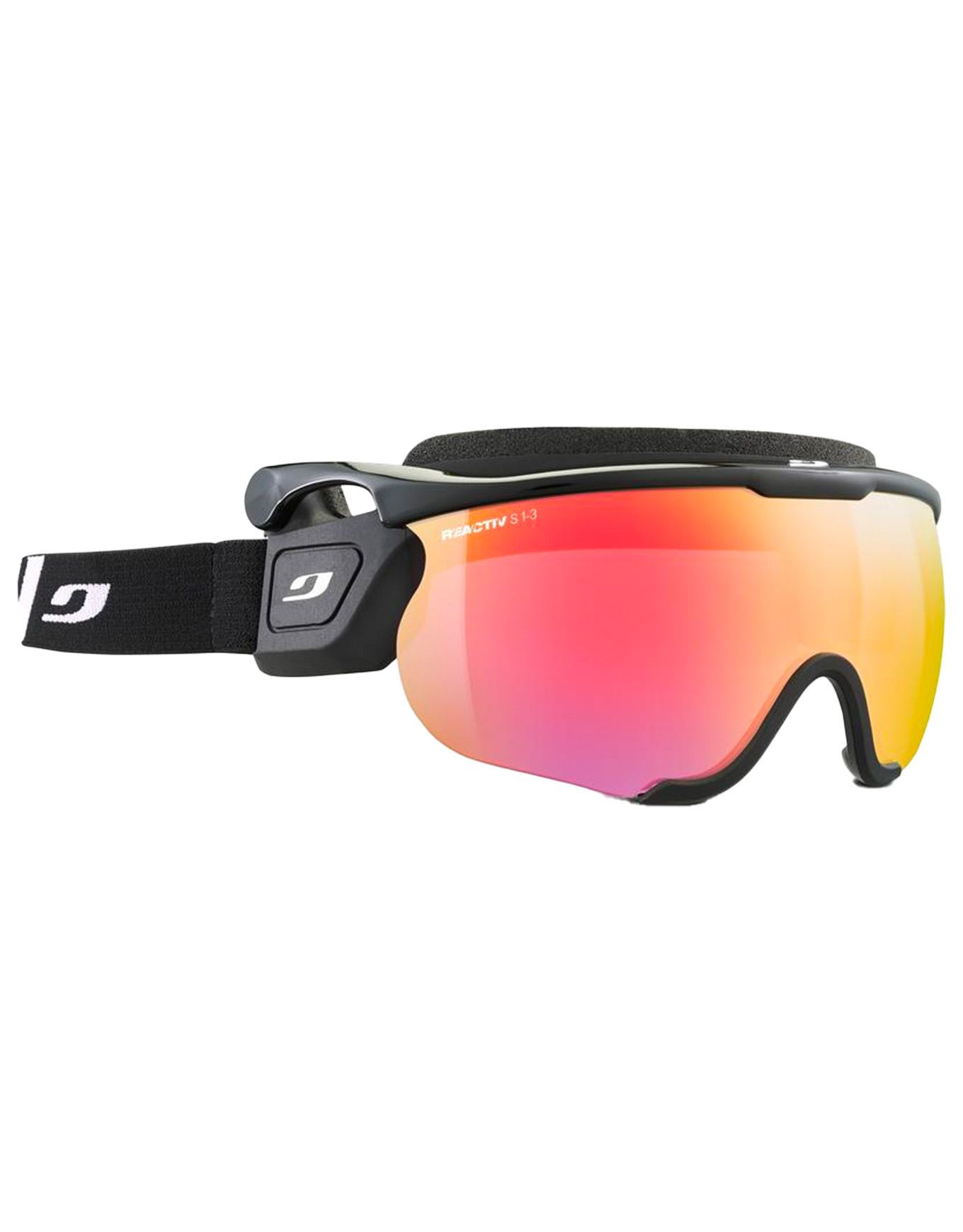 Visière ski nordique Julbo Sniper Evo M Reactiv 1-3 HC Black/Black, écran photochromique incassable Reactiv High Contrast, ajustement précis et mousse Soft Confort pour visage moyen, écran relevable compatible biathlon.