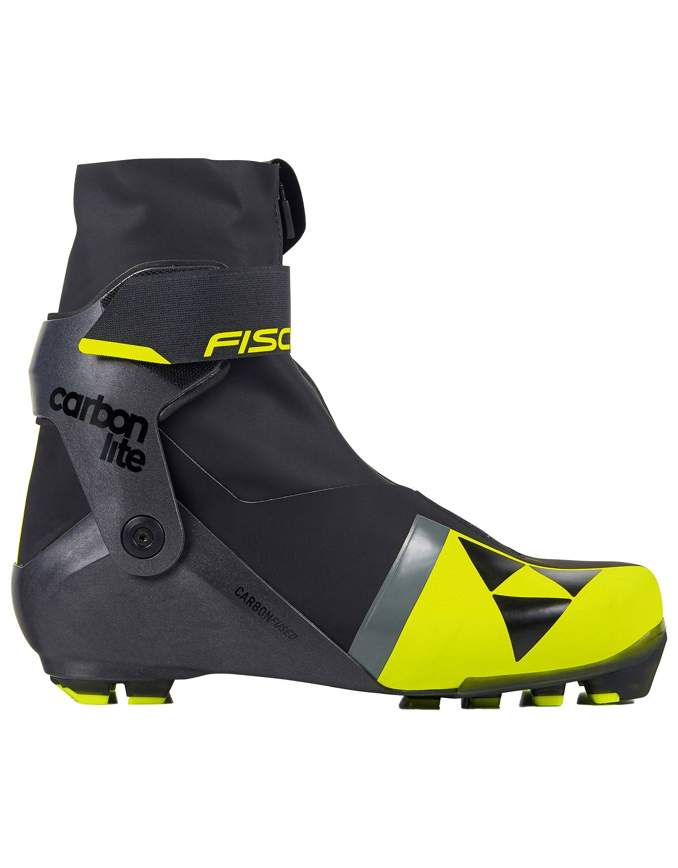 Chaussure de ski nordic skating Fischer Carbonlite Skate homme, légère et rigide avec renfort carbone talon, fermeture Speed Lock, semelle Turnamic Speedmax et isolation intégrale pour compétiteurs exigeants.
