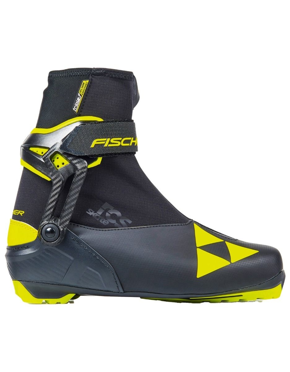 Chaussure de ski nordic skating Fischer RCS Skate homme avec semelle Turnamic, serrage Speed Lock et strap Velcro pour une transmission d’appui précise. Membrane Triple-F et Comfort Guard maintiennent les pieds secs et au chaud.