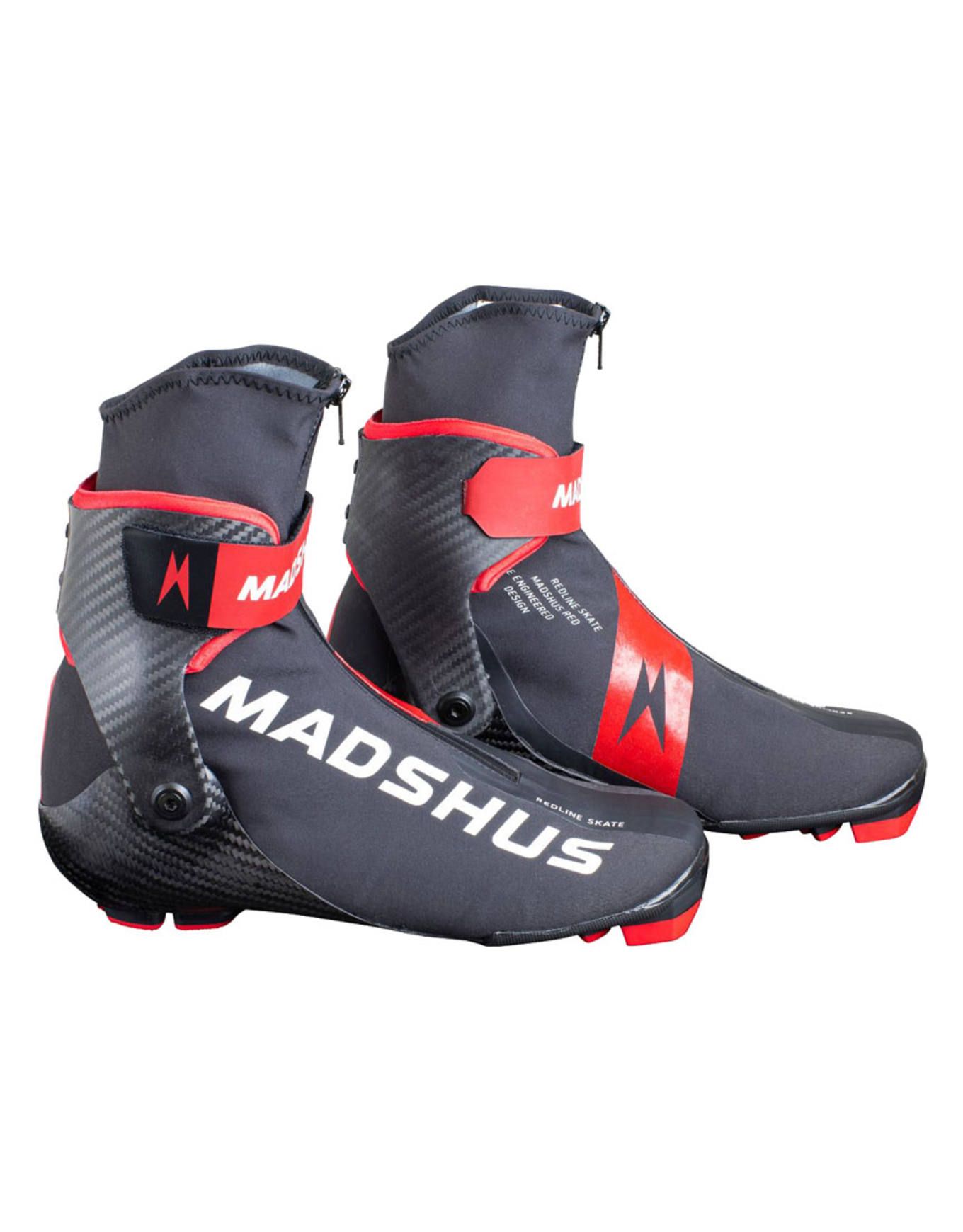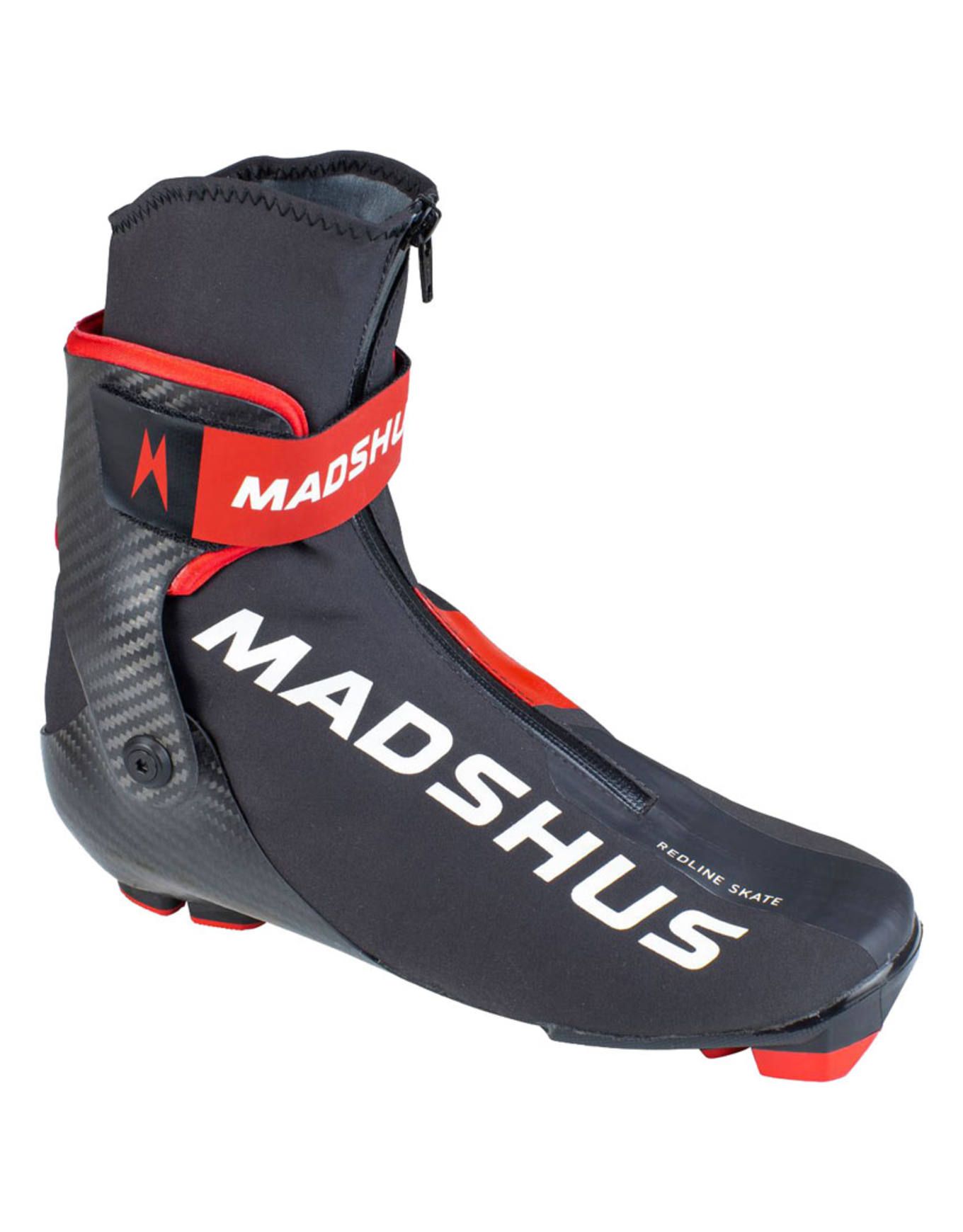 Chaussures de ski nordique Madshus Redline Skate conçues pour la compétition de skating, combinant une base carbone légère, membrane softshell respirante et technologie Race Wrap™ pour soutien et précision sur neige compacte.