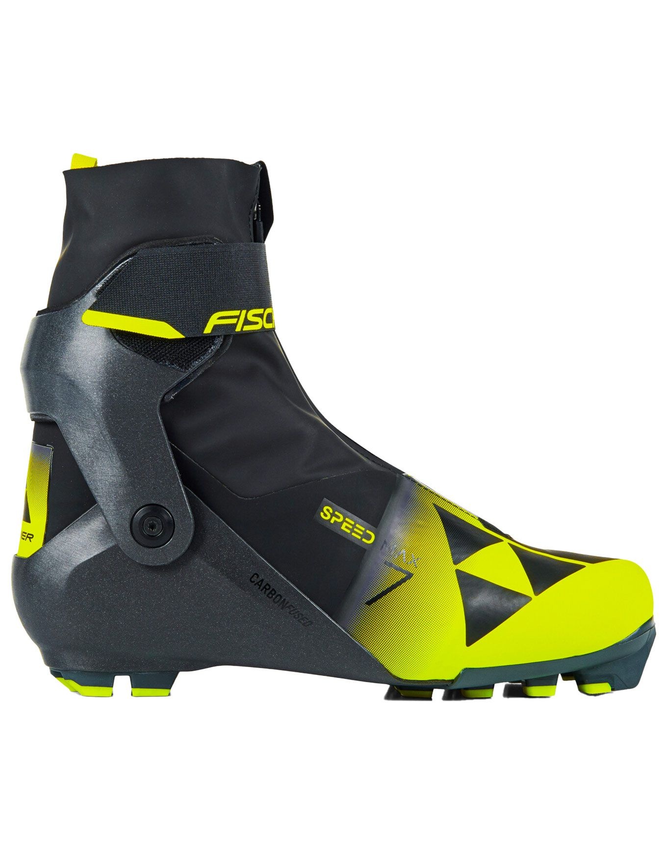 Chaussure de ski nordique skating Fischer Speedmax 7 Skate homme, ultra-légère et rigide grâce au chassis CarbonFused®, avec fermeture Speed Lock et semelle Turnamic pour transmission de puissance optimale.