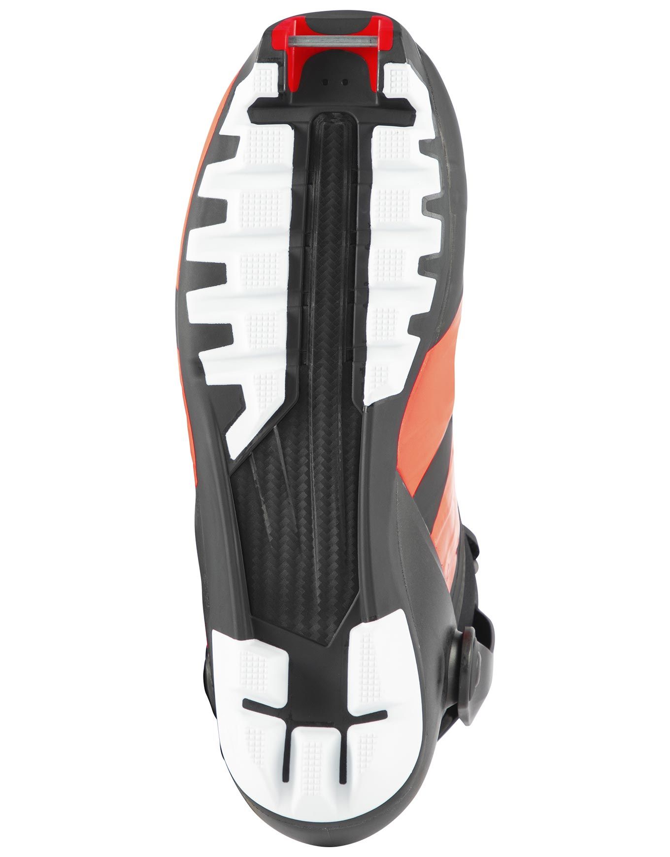 Une architecture entièrement constituée de carbone 100 % compose la semelle, les renforts et le collier. Cette rigidité structurelle assure une réactivité instantanée ainsi qu’une transmission de puissance directe. Le maintien ferme du pied permet une poussée à la fois précise et efficiente.