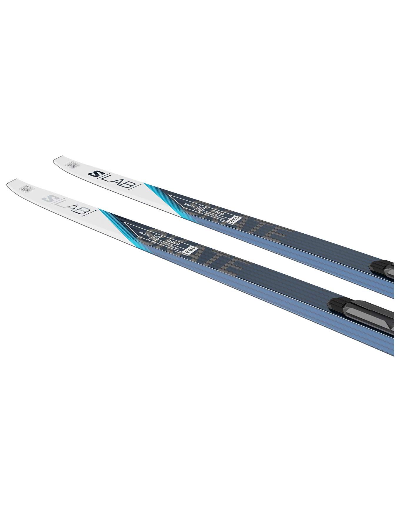 Salomon S/Lab Skate Blue + Shift Race 2025, ski skating compétition, allie noyau Nomex ultra-léger et semelle G5% pour performances sur neige froide, stabilité et transmission d’énergie optimales.