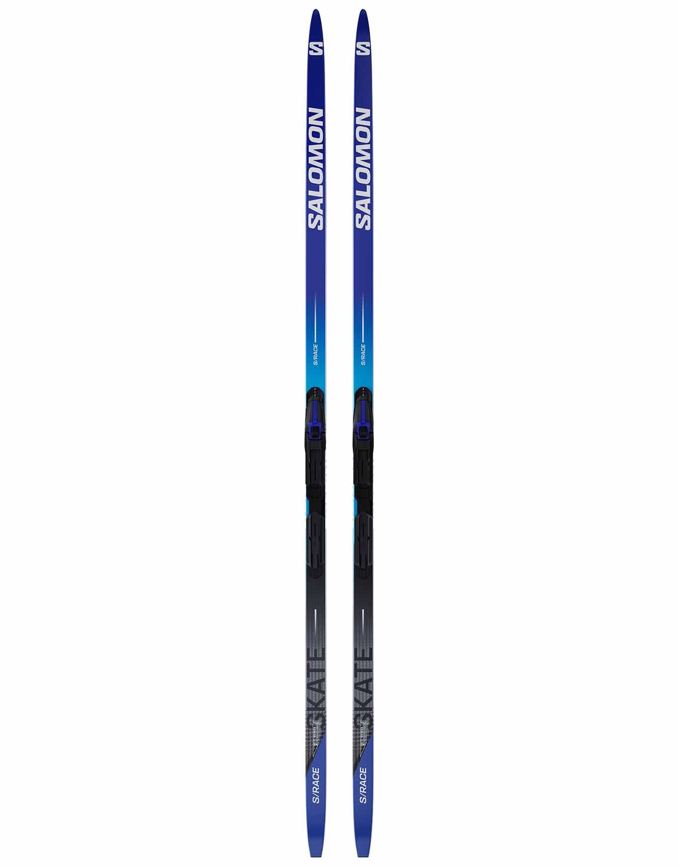 Salomon S/Race Skate : ski nordique compétition 1060 g, noyau Nomex carbone, semelle G5, flex D2FC, fixation Prolink Shift inclus.
