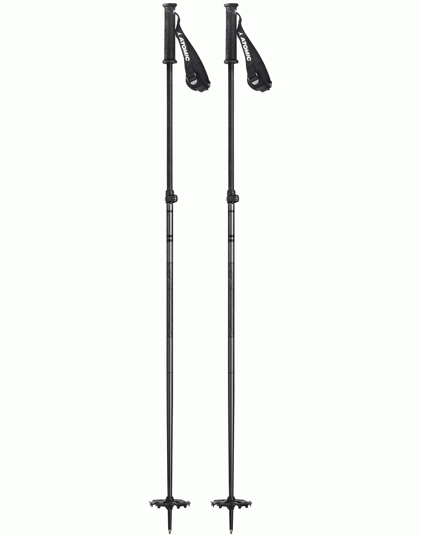 Bâton de ski freeride Atomic Backland Fr, en aluminium 5, télescopique 110-135 cm avec Power Lock, dragonne rembourrée, rondelle poudreuse, pointe carbure et tournevis à fixation intégrés.