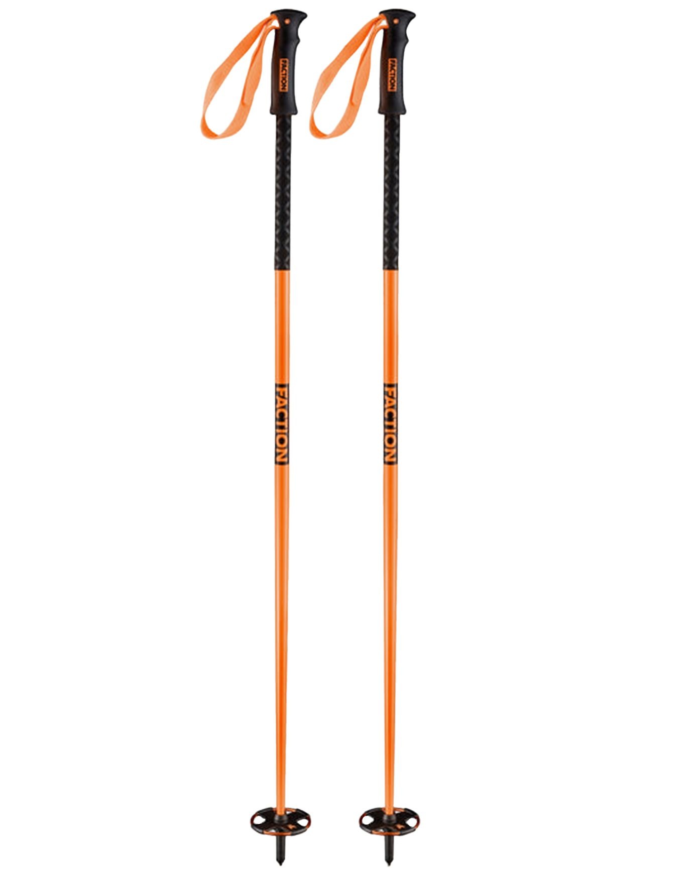 Bâtons de ski Faction Poles Orange en alliage aluminium 7075, légers et résistants, avec poignée ergonomique PU et manchon long pour une prise sûre sur piste comme en freeride.