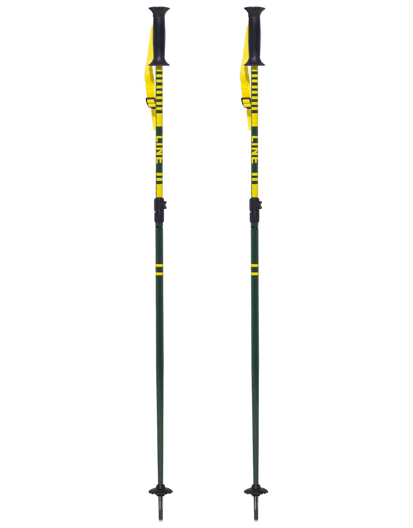 Bâton de ski Line Get Up en aluminium télescopique 75-105 cm, dragonnes standards, grip ergonomique et rondelles 50 mm interchangeables piste/poudreuse.