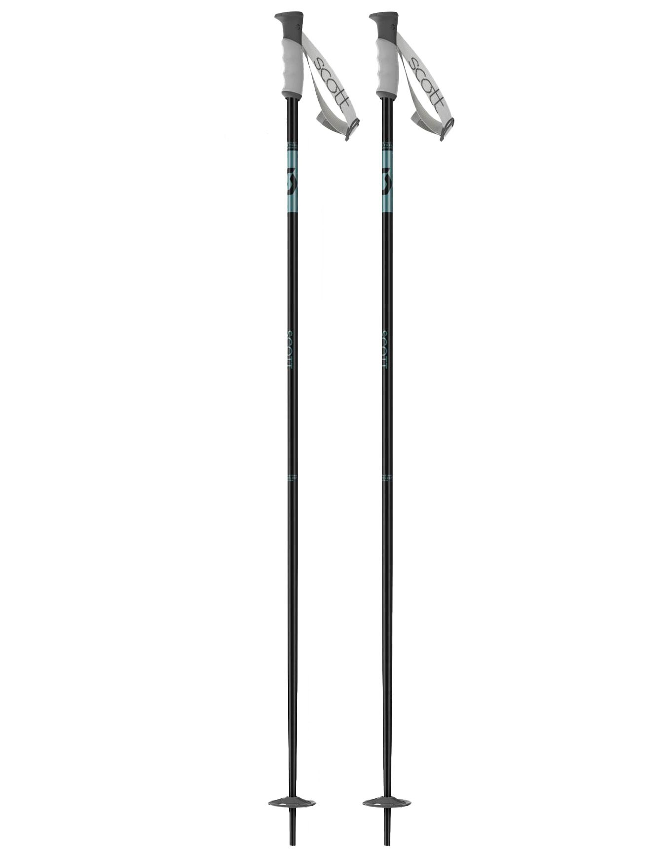 Bâtons de ski freeride Scott Kira Black Pearl pour femme, tube aluminium 16 mm, poignée ergonomique Slash, dragonne FX 24 Women, pointe acier à facettes et rondelle aluminium durable.