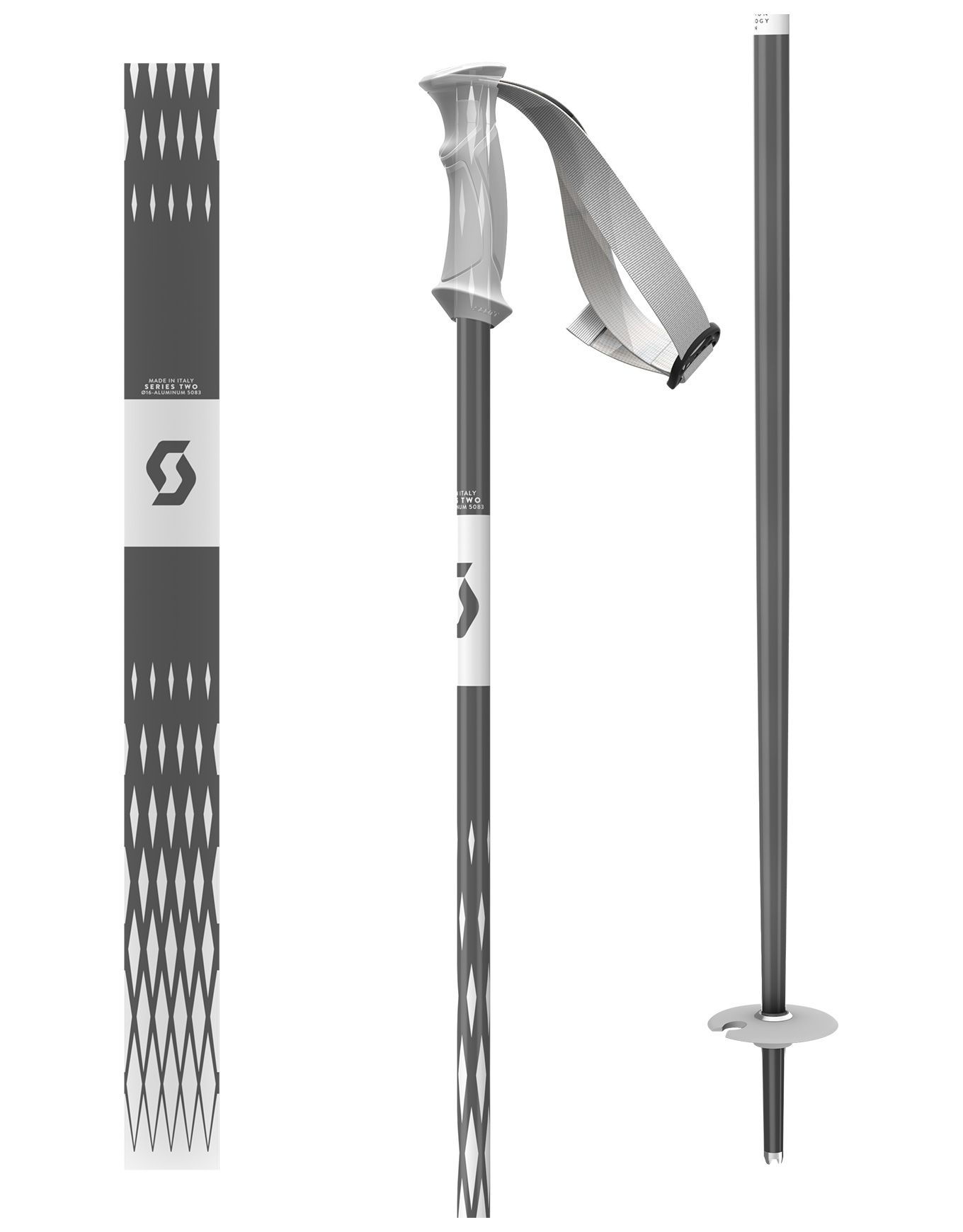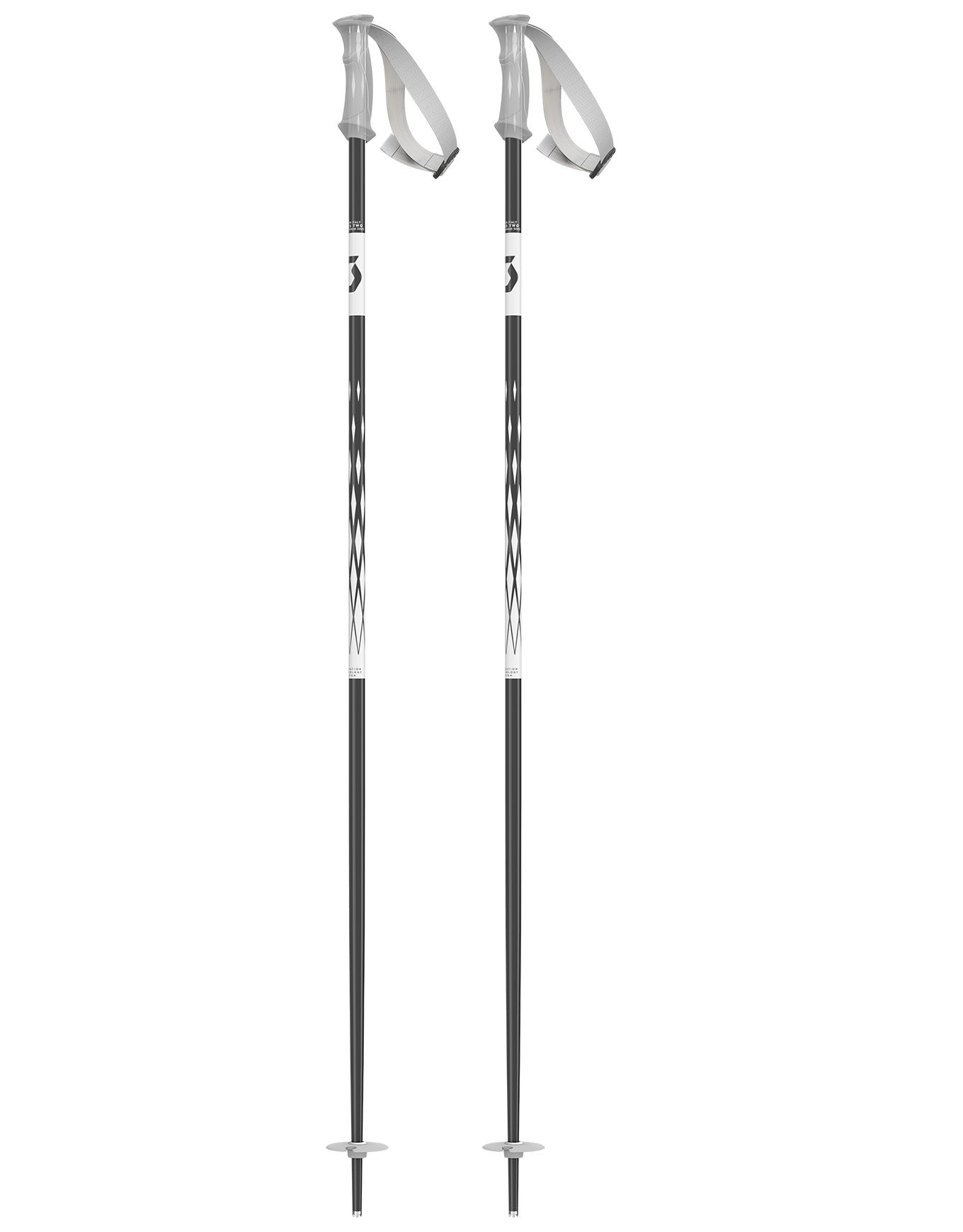 Bâtons de ski all-mountain Scott Koko Black Pearl femme, tube aluminium 16 mm, poignée P-Lite ergonomique, dragonne FX 24 Regular, pointe acier facettée et rondelle performante sur piste.