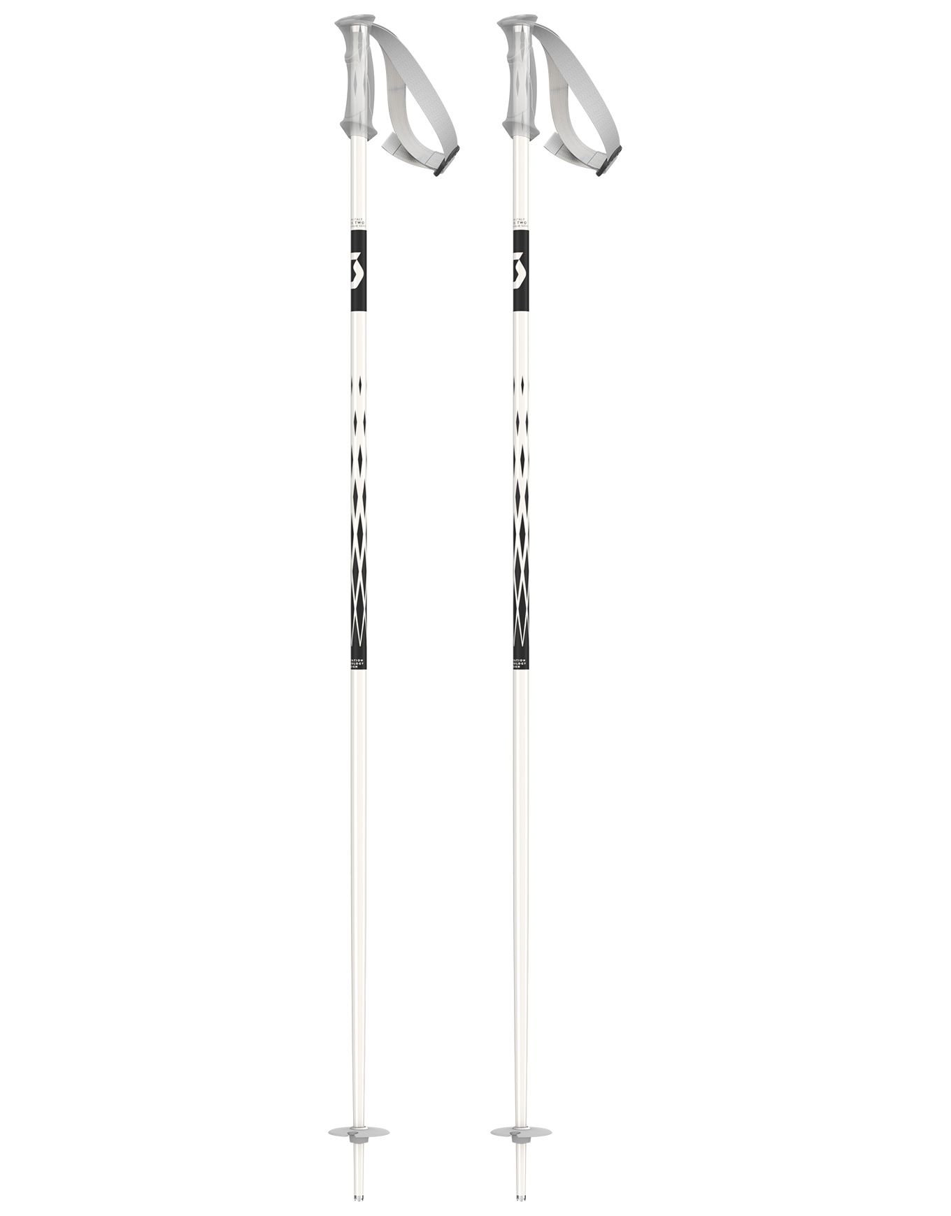 Bâtons de ski all-mountain Scott Koko White Pearl pour femme, tube aluminium 16 mm, poignée P-Lite ergonomique, dragonne FX 24 Regular, pointe acier à facettes et rondelle performante sur piste.