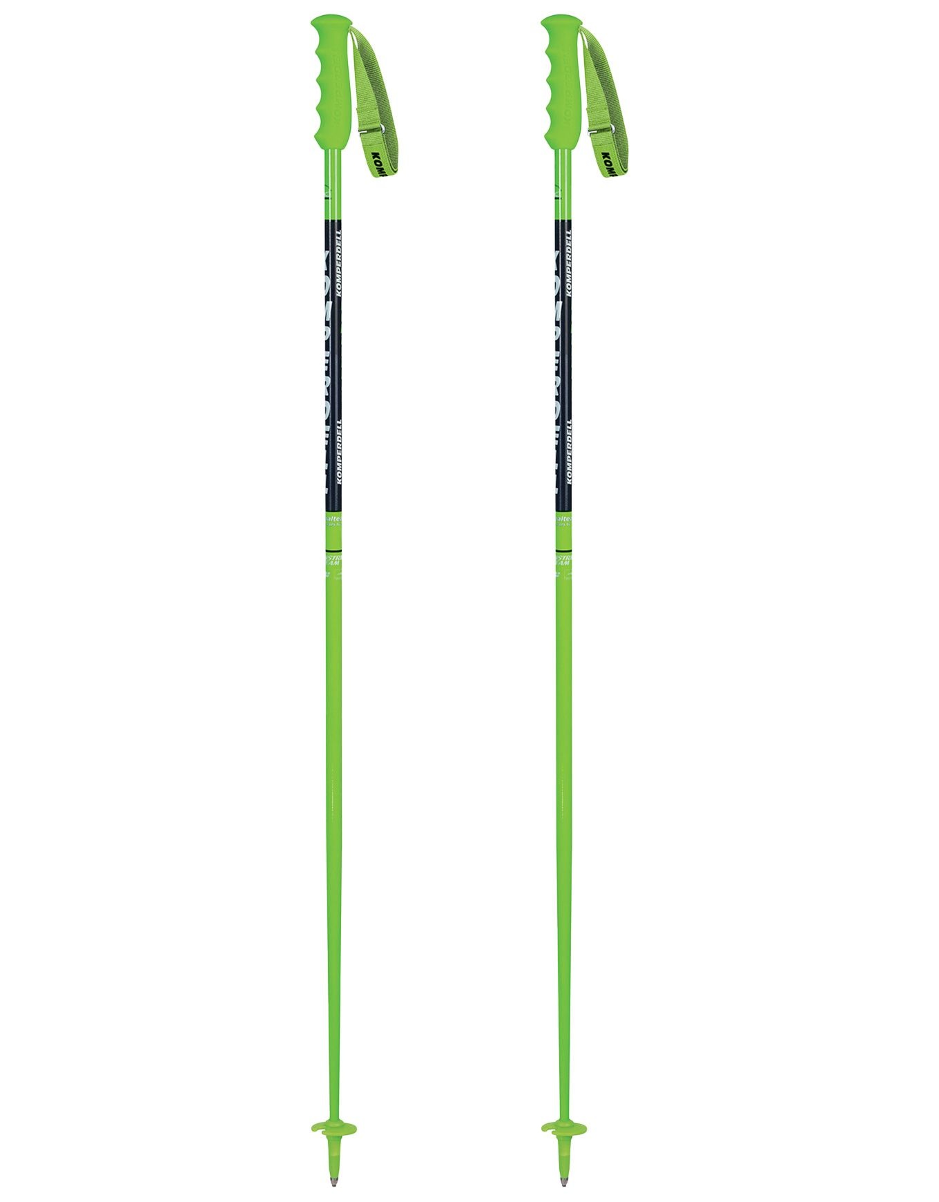 Bâtons de ski Komperdell National Team Alu 18 mm en aluminium 100 %, ultra-légers et équilibrés pour la compétition, offrent robustesse et visibilité sur piste.