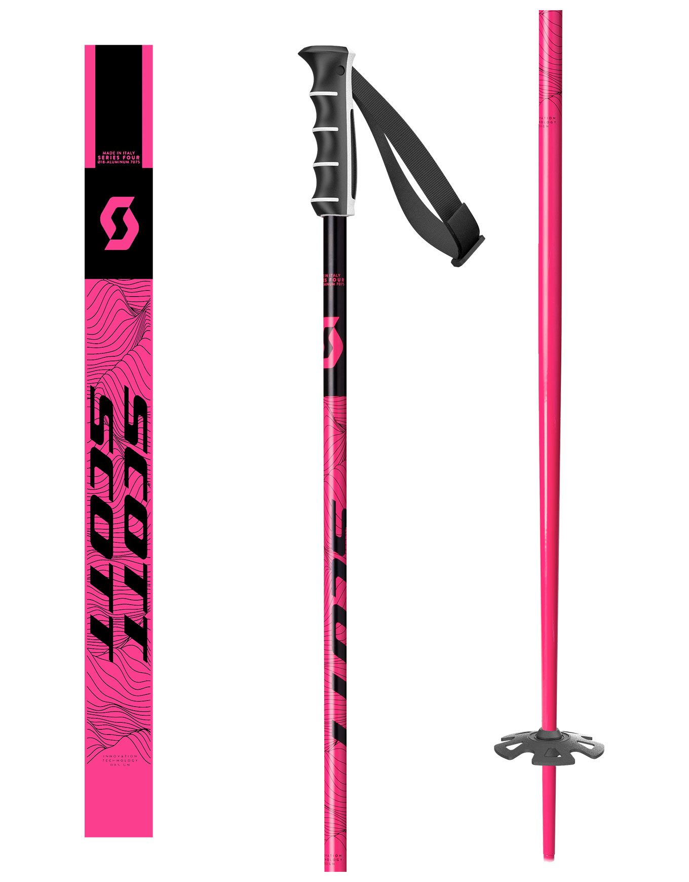 Bâton de ski freeride Scott Sea Pink en aluminium 18 mm, poignée Notch 2.0 et dragonne réglable FX15x25 pour liberté de mouvement, pointe acier et rondelle neige fraîche assurant tenue stable en conditions extrêmes.