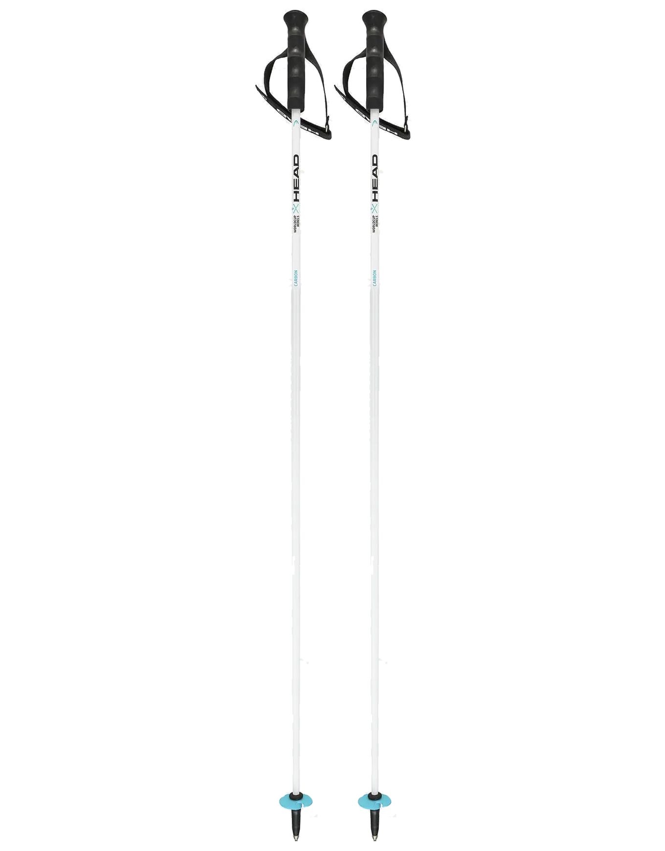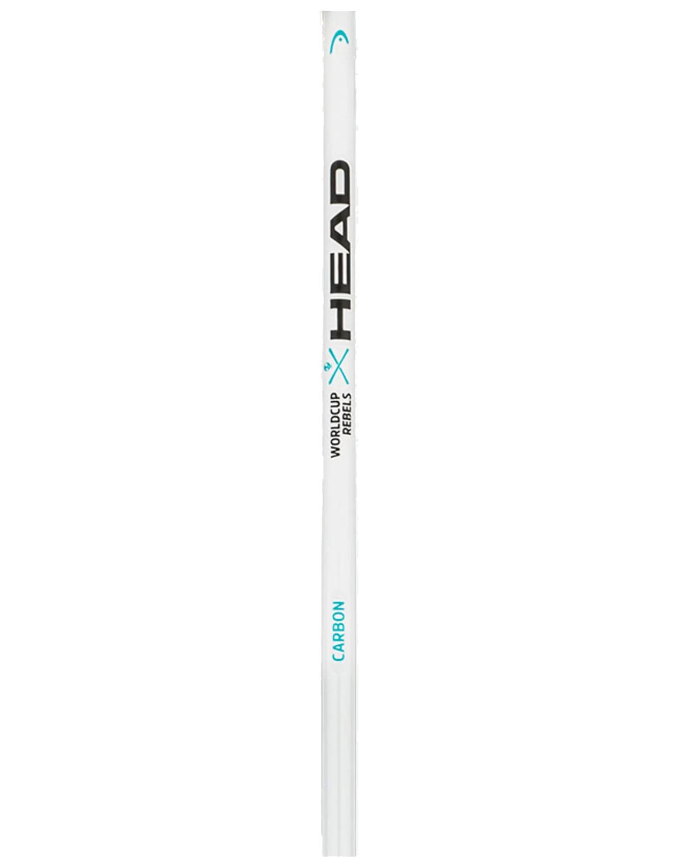 Bâton de course Head Worldcup Rebels Carbon White en carbone, poignée racing caoutchouc et dragonne velcro, mini-rondelle course et pointe carbure pour virages rapides et planté efficace sur verglas.