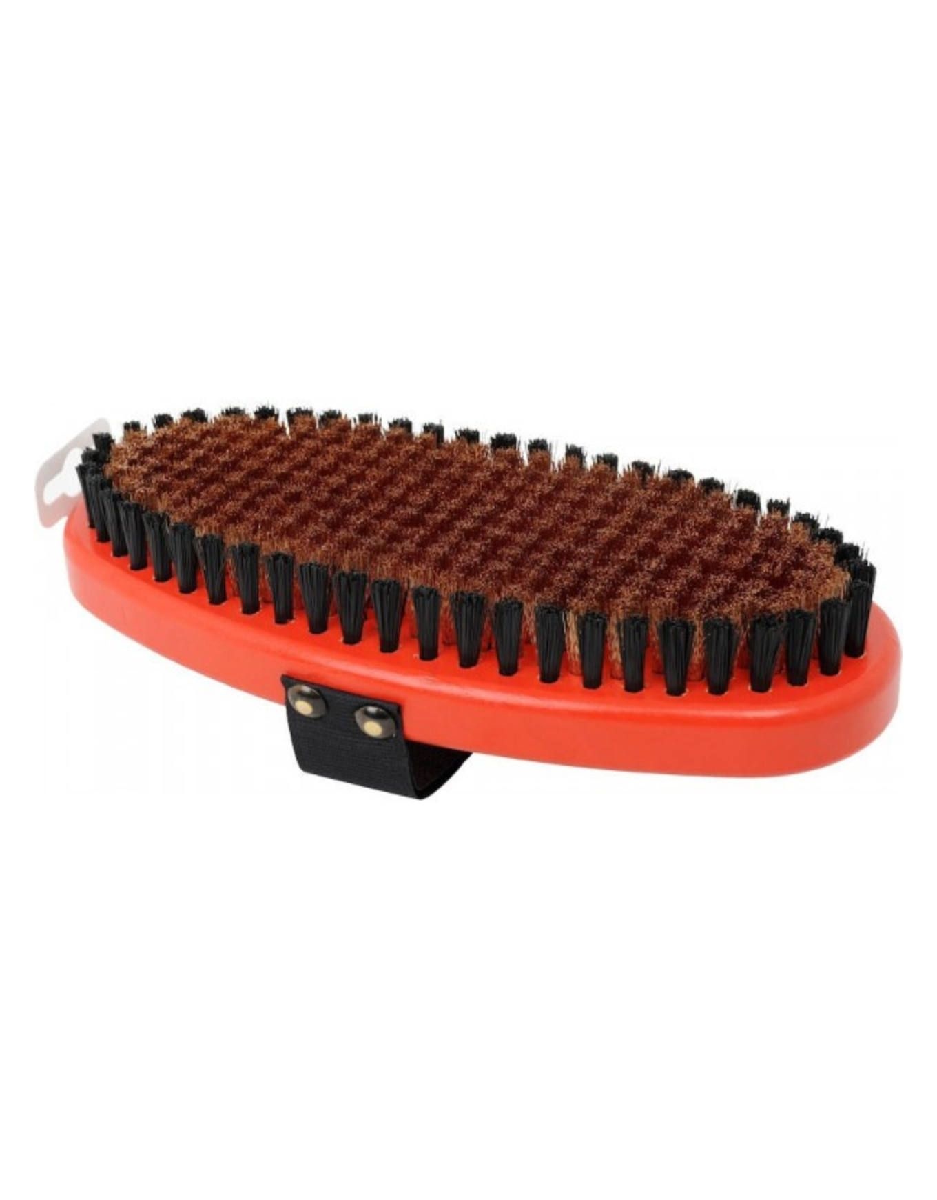 Brosse Swix Brush Oval Medium Bronze pour l’entretien des skis, en bronze fin, élimine la cire résiduelle après grattage et fait ressortir la structure. Son format ovale et sa sangle Velcro® assurent une prise stable pour un brossage efficace de la spatule au talon.