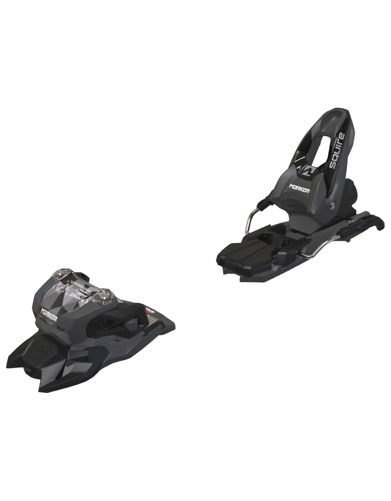 La fixation de ski freeride Marker Squire 10 +Screw Kit Black/Anthracite, livrée avec vis courtes pour ski junior, allie légèreté et fiabilité pour les jeunes riders débutants en freeride ou freestyle, avec butée Triple Pivot Light 2 compatible chaussures alpines et GripWalk, technologie AFD pour déclenchement précis.