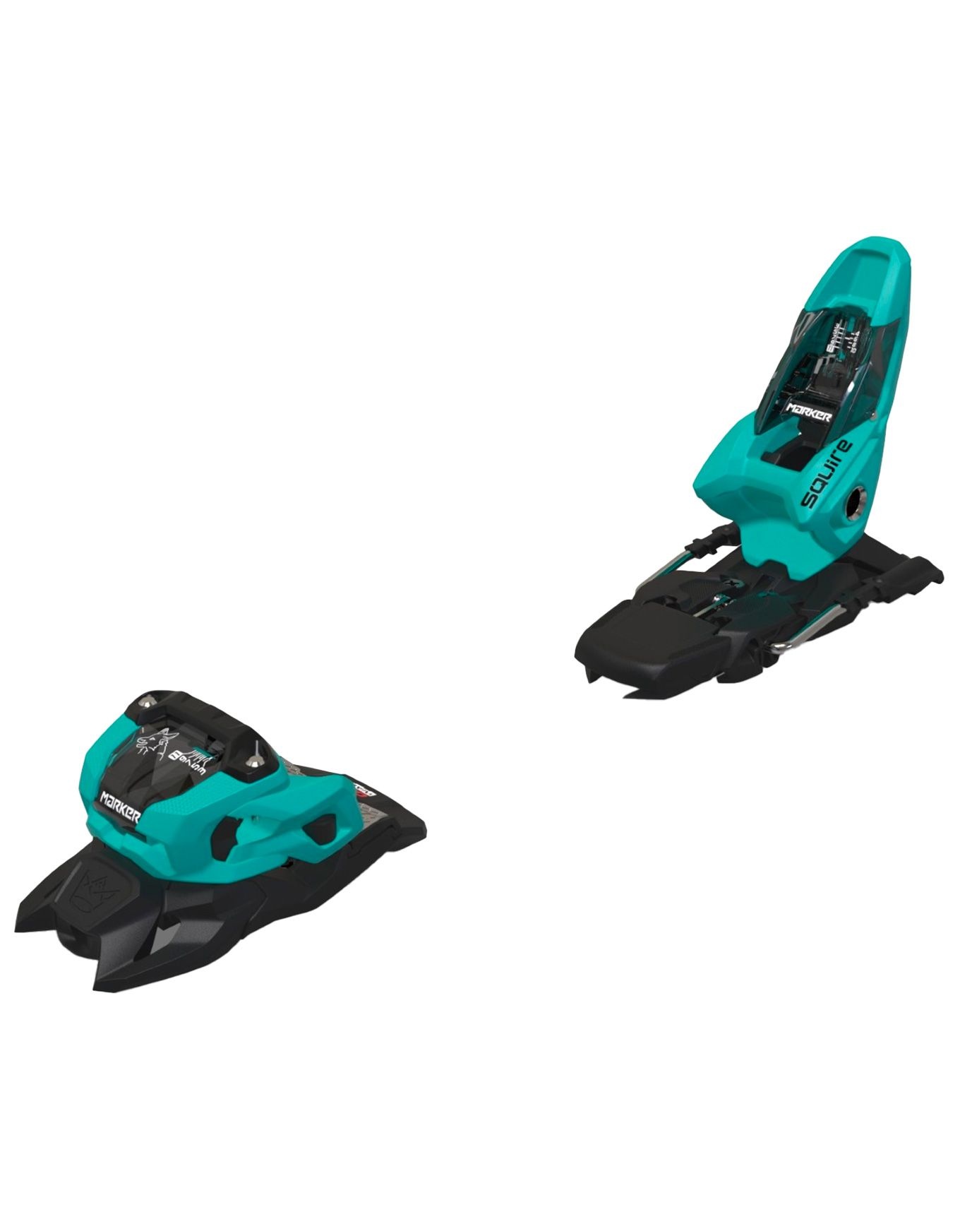 La fixation de ski freestyle et freeride Marker Squire 11 Black/Teal, ultra-légère, offre confort et fiabilité aux débutants, petits gabarits et rideuses grâce à la technologie AFD pour un déclenchement précis.