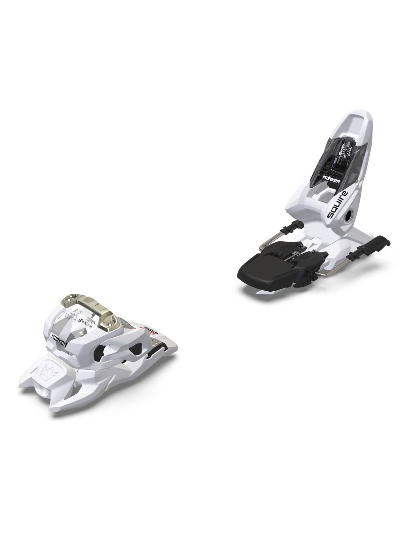 Fixation de ski freestyle et freeride Marker Squire 11 White, ultra-légère et fiable grâce à la technologie AFD ; idéale pour débutants, skieurs légers et rideuses recherchant confort et sécurité sur piste et dans les premiers sauts.