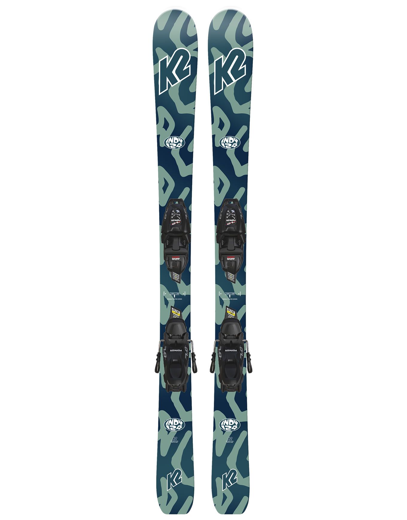 Skis enfant K2 Indy 2025, modèle junior avec rocker Catch-Free et flex Noodle pour un apprentissage en confort et sécurité, livrés montés avec fixations FDT 4.5.
