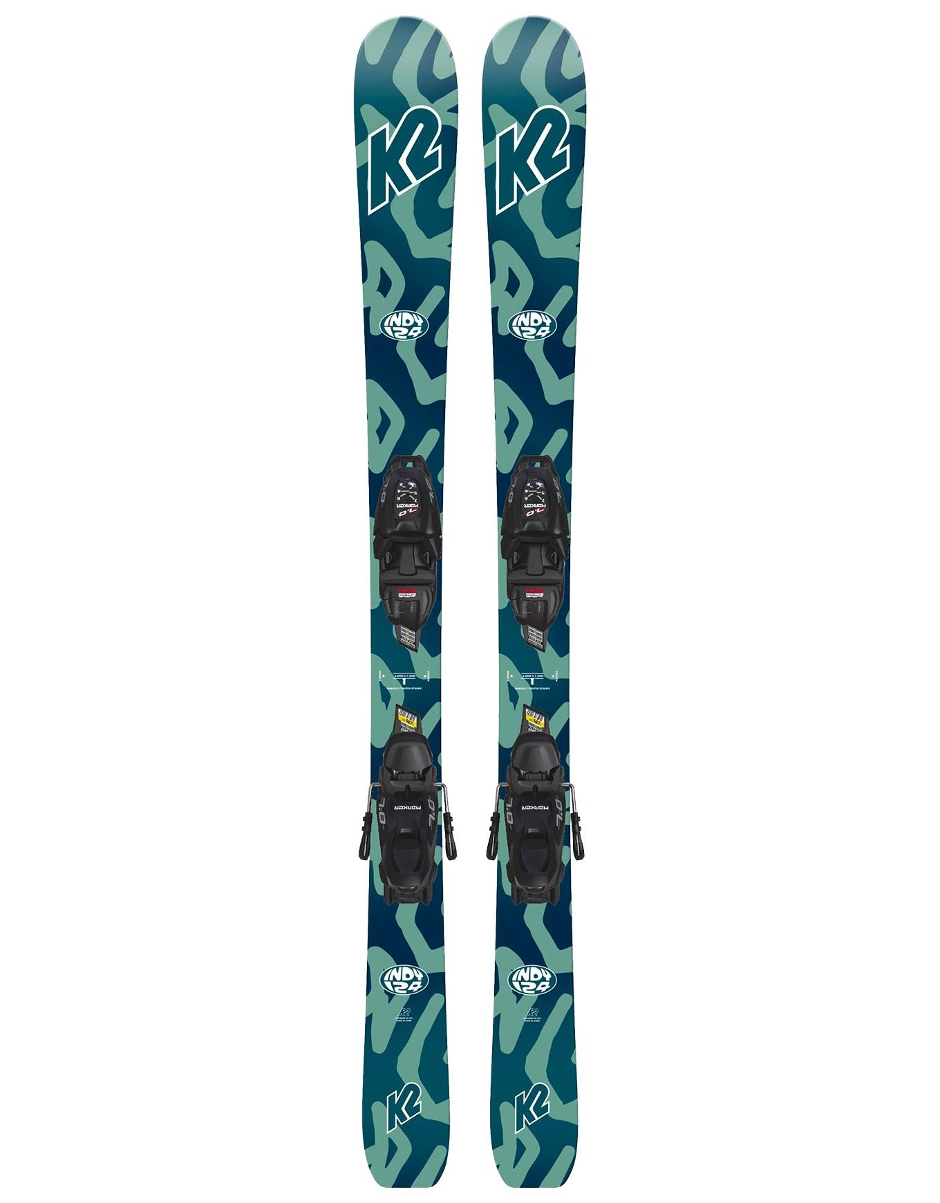 Skis enfant K2 Indy 2026, junior, facile courbe grâce au rocker Catch-Free et flex tolérant Noodle, confort-sécurité, livré avec fixations Fdt 4.5 Set + S Plate.