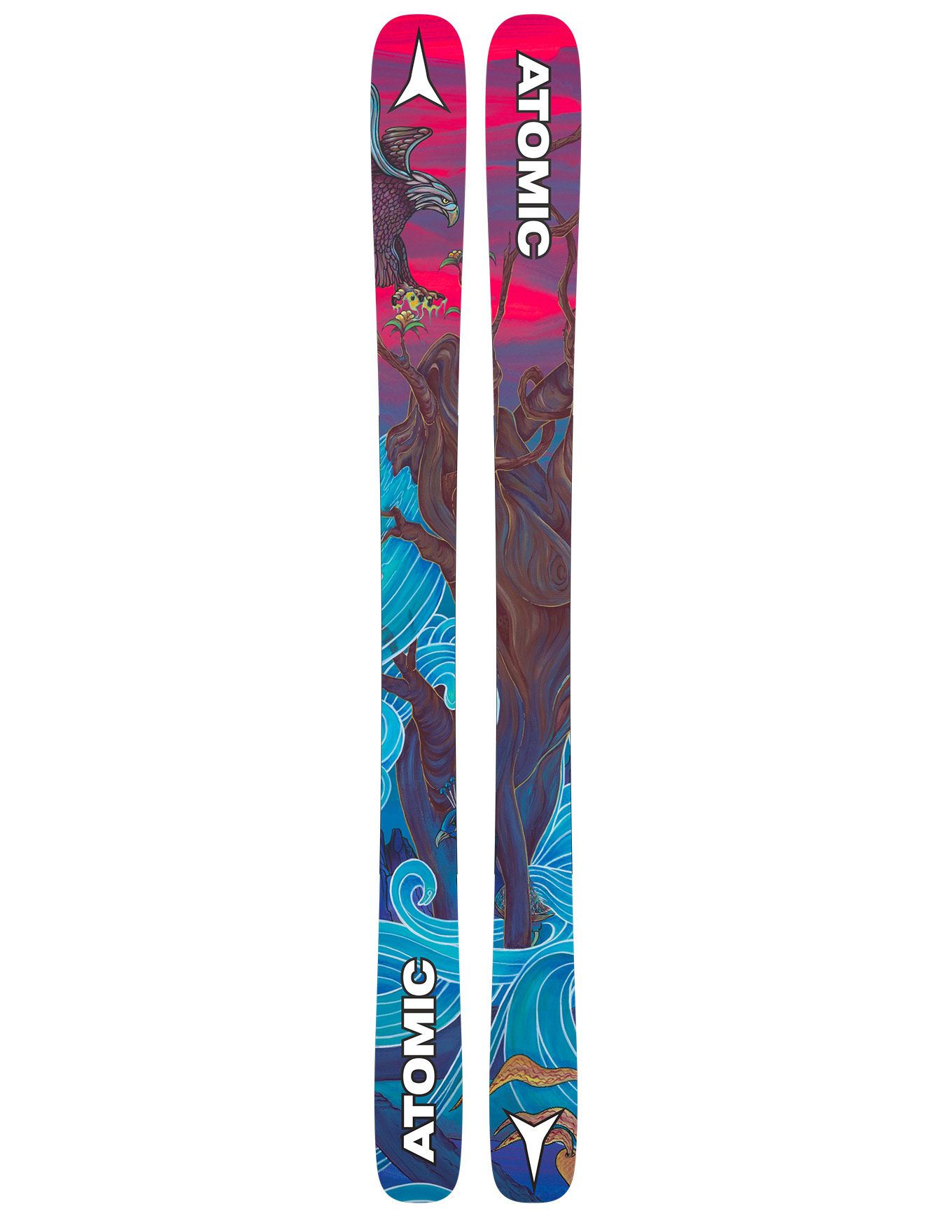 Le ski Atomic Bent Chetler Mini 2026, version junior 133-143 cm, all-mountain/freestyle, allie double rocker poudreuse, chants pleins et noyau Densolite pour accroche, vivacité et portance en hors-piste adaptées aux jeunes freerideurs.