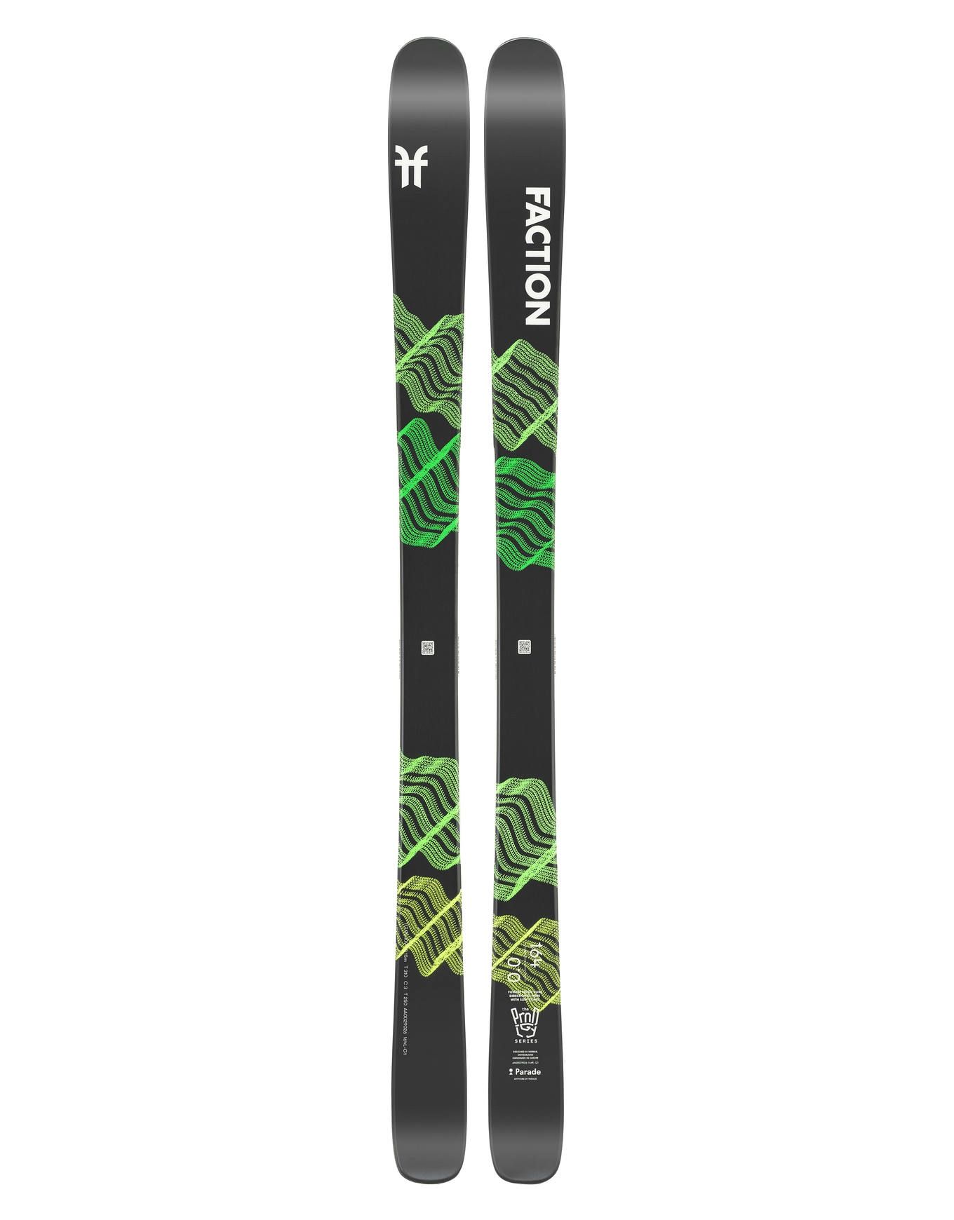 Ski all-mountain Faction Prodigy 0.0 Jr pour jeunes novices et intermédiaires, shape twin directionnel avec rockers, flex 5/10 et Surf Zones pour maniabilité et tolérance sur toute neige.