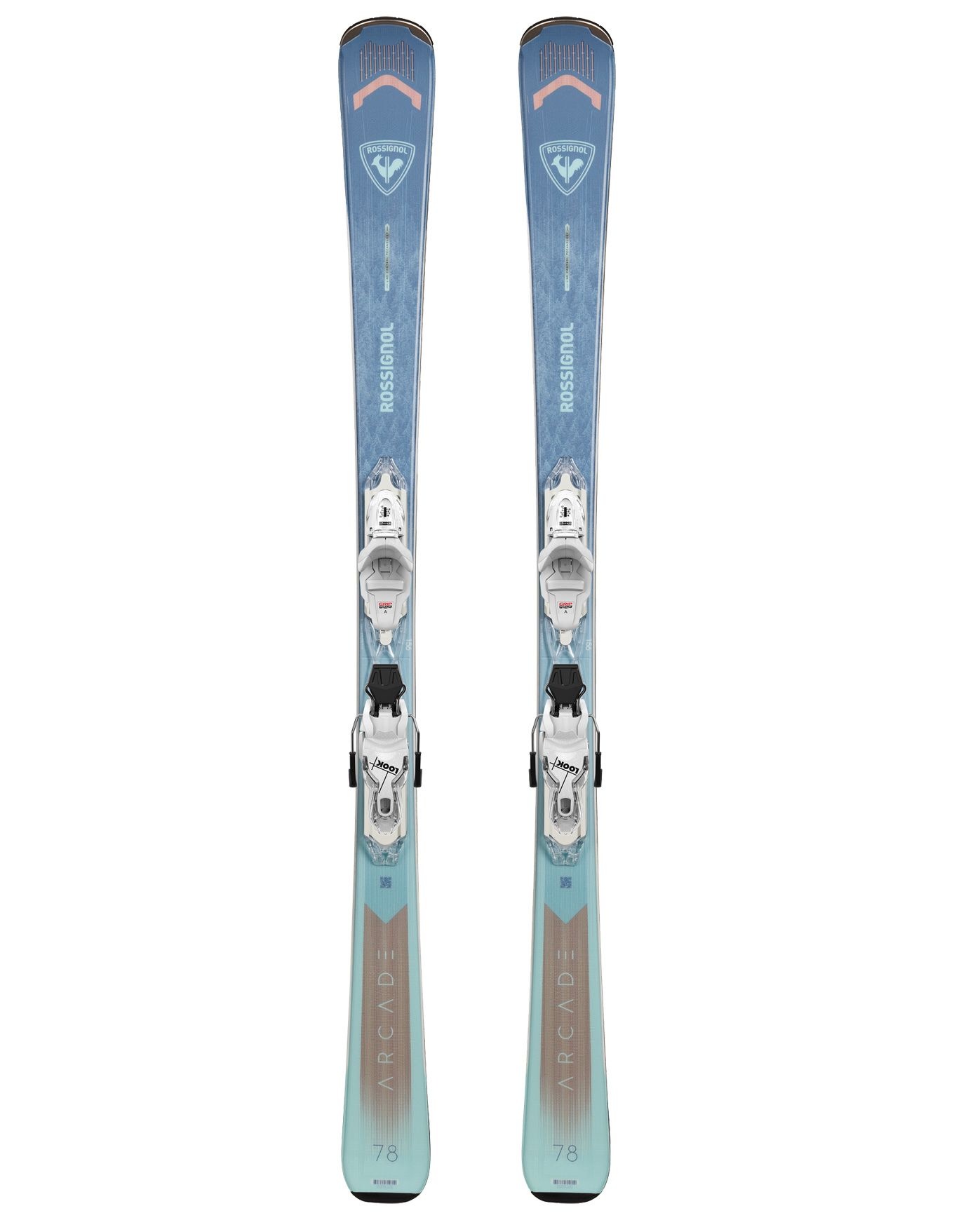 Rossignol Arcade 78 2026, ski all-mountain femme, allie légèreté du bois de peuplier, titane pour stabilité et VAS pour absorption des vibrations, assurant conduite précise et virages fluides.