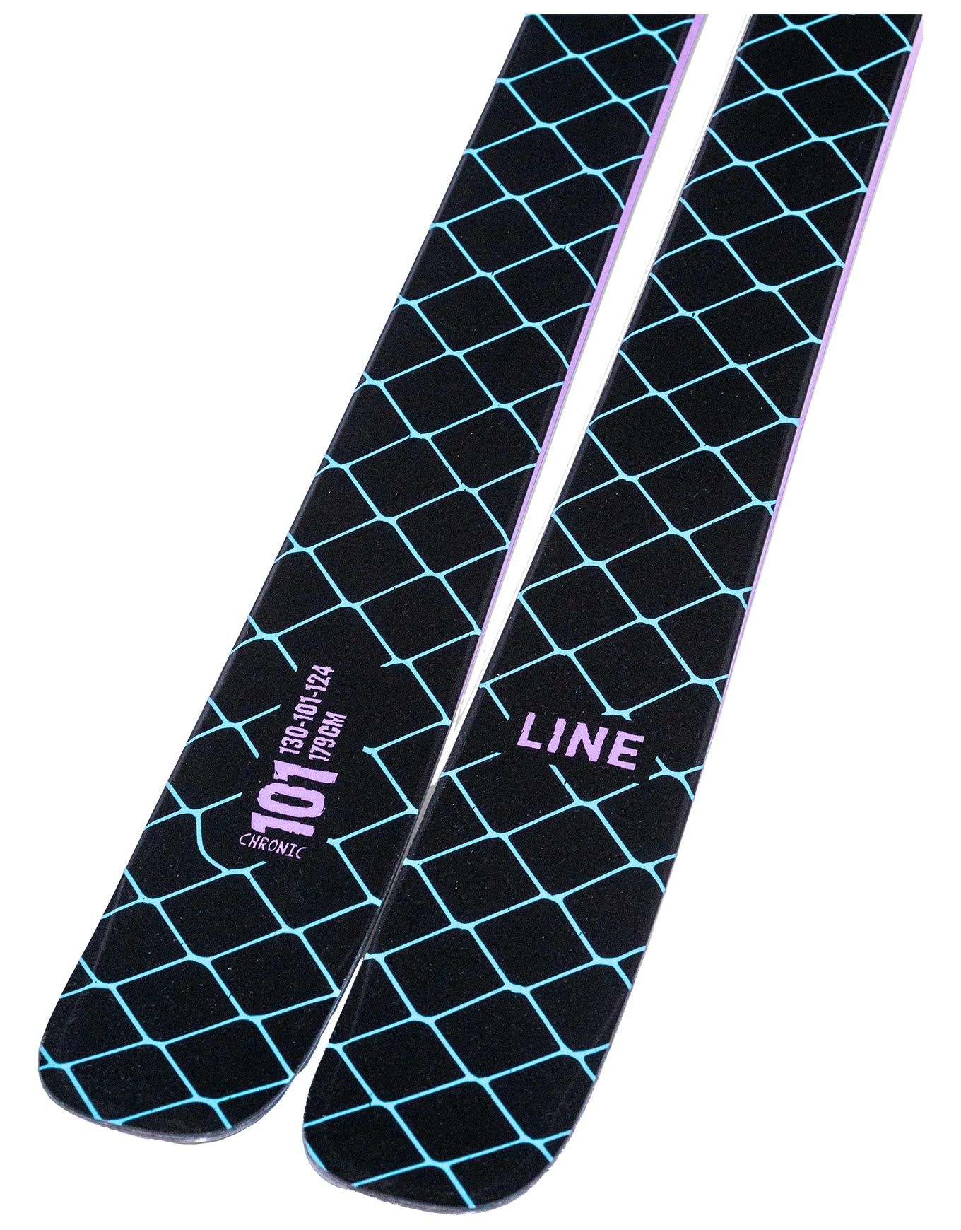 Le ski Line Chronic 101 2026, polyvalent freeride 101 mm au patin, offre portance, pop et solidité renforcée Fatty Base & Edge pour rideurs intermédiaires à confirmés sur piste, park et hors-piste.