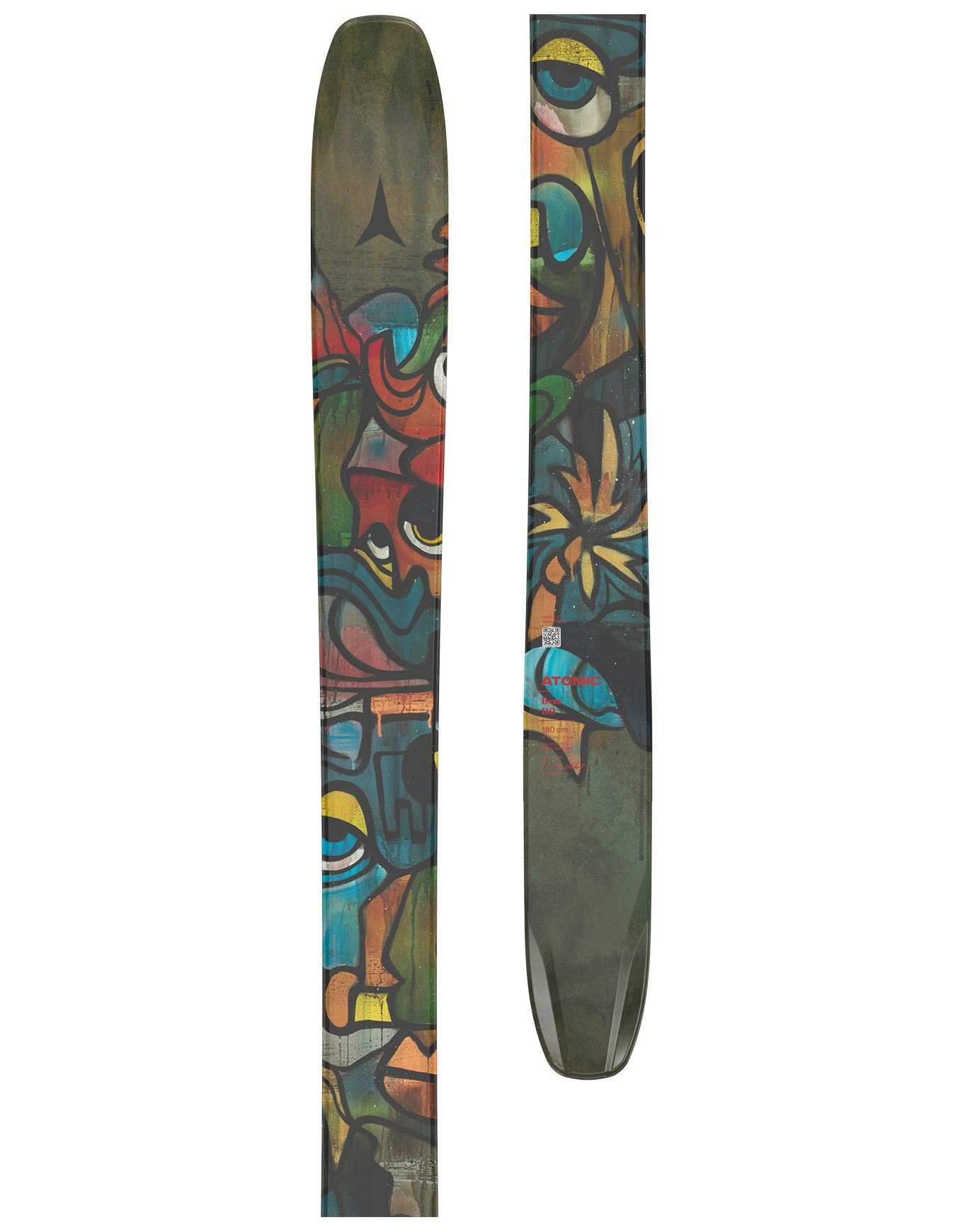 Ski freeride Atomic Bent 110 2026, 110 mm au patin, allie légèreté du noyau Light Woodcore et portance HRZN Tech Tip pour évoluer en toute confiance dans la poudreuse et sur terrain varié.