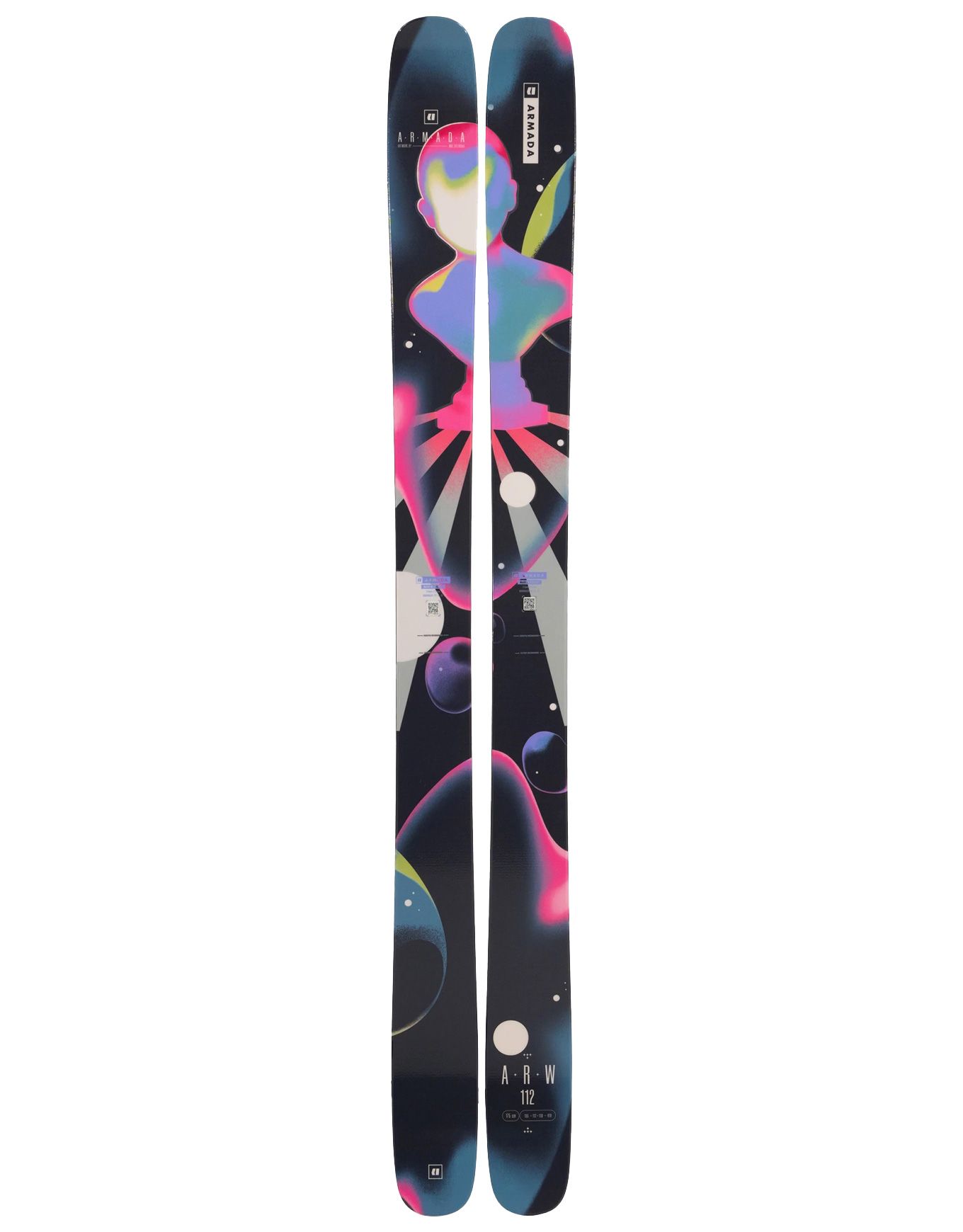 Armada ARW 112 2025, ski backcountry freestyle unisexe, 112 mm au patin pour polyvalence park/poudreuse, noyau Caruba ultra-léger, carres 2,5 mm et chants 3D W3DGEWALL pour solidité accrue, double rocker S7 vif et dynamique sur toute neige.
