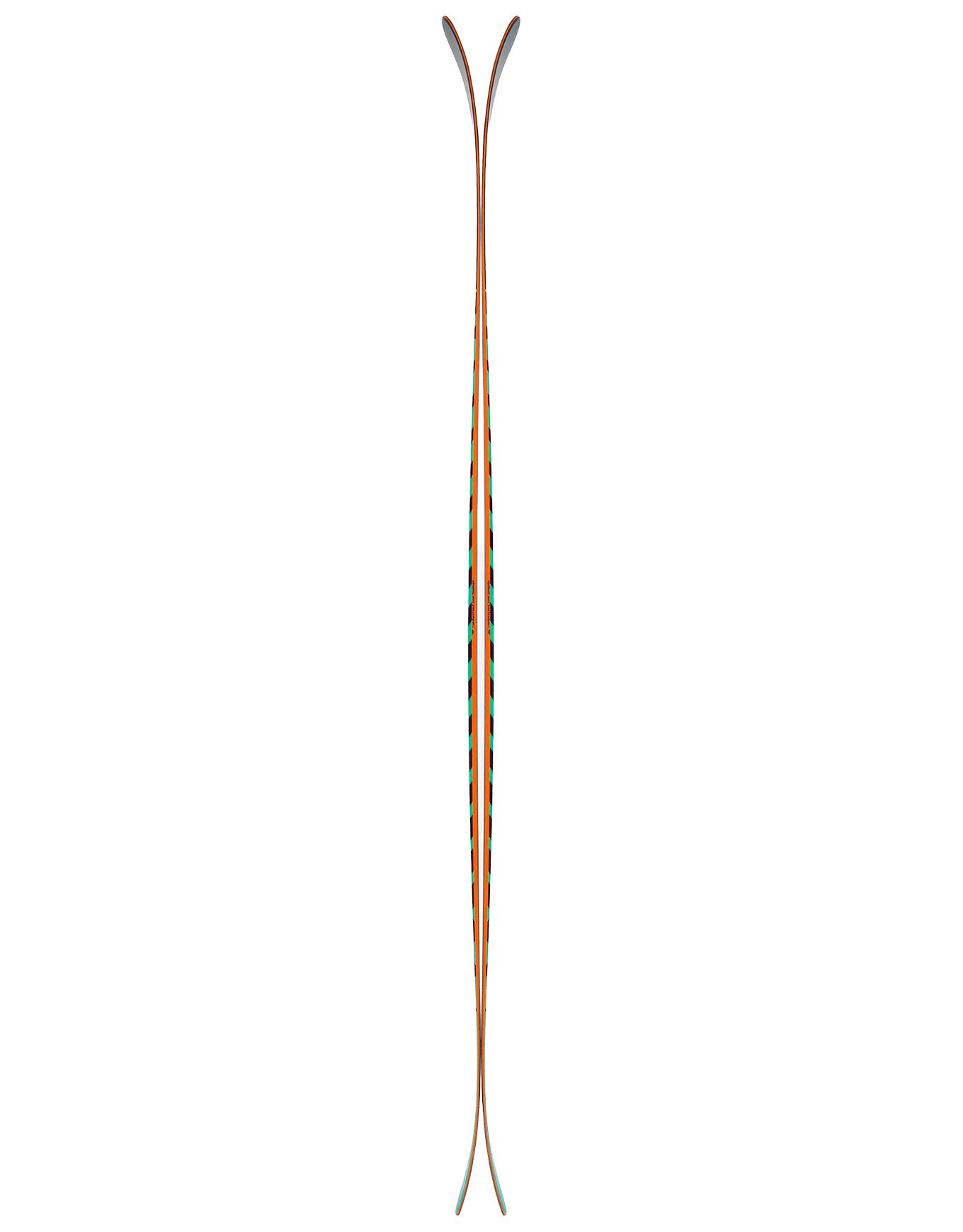 Le contrôle en virage est optimisé par le relevé progressif des spatules, qui facilite également le déjaugeage. Sous le pied, le cambre classique garantit puissance et accroche sur neige dure ou changeante. L’équilibre entre stabilité à haute vitesse et maniabilité est obtenu par une ligne de côte légèrement tendue associée à un rayon long de 19/20 m, permettant de tracer de belles lignes quelle que soit la cadence.