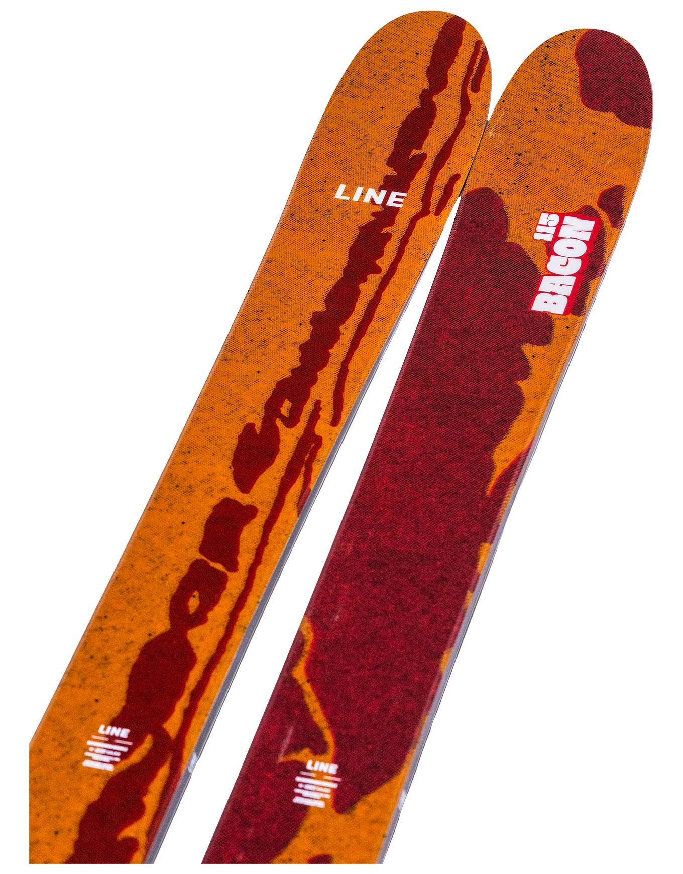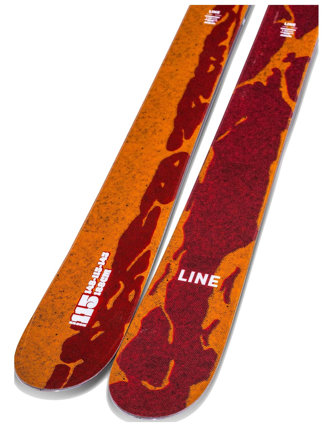 Le Line Bacon 115 2026, ski freeride homme 115 mm de patin, allie flottaison en poudreuse, stabilité et pop dynamique pour rideurs confirmés grâce à son double rocker, noyau érable/peuplier et construction renforcée Thick-cut Sidewall.