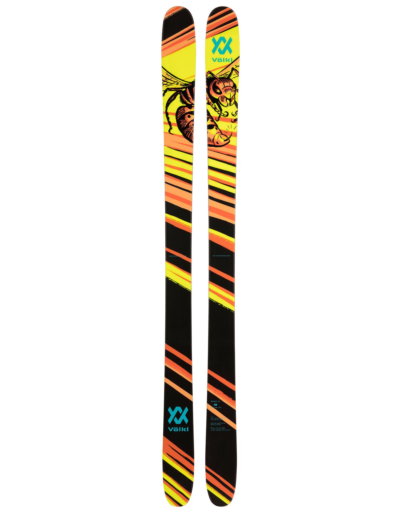 Imaginé par Völkl, le Revolt 96 s’adresse aux passionnés de freestyle en quête d’un ski performant. Sa conception permet d’exprimer tout votre potentiel au snowpark, que ce soit lors de spins ou de saisies. La maniabilité sur l’ensemble des types de neige est assurée par un patin de 96 mm, des formes généreuses et un double rocker marqué, tandis que la portance en poudreuse reste satisfaisante. Une accroche fiable sur neige damée ou glacée est garantie par le cambre classique. L’âme Multilayer Woodcore, constituée de plusieurs essences de bois, offre une combinaison de légèreté, de souplesse et de dynamisme. Le caractère ludique de ce ski se traduit par un pop franc et des réceptions en switch facilitées grâce à la construction Twin Tip. Agilité et stabilité sont au rendez-vous, que l’on enchaîne les petits virages serrés ou les longues courbes rapides, grâce à la technologie 3D.Radius Sidecut. La réactivité est améliorée par des transitions de carres affinées, permettant de s’adapter aux changements de terrain ou de trajectoire vers modules et kickers. La structure Full Sidewall confère au Revolt 96 puissance et robustesse, le rendant résistant aux impacts répétés. Ce ski constitue un partenaire privilégié pour les riders expérimentés souhaitant exprimer leur style en park ou en street. Son look exclusif est signé par l’artiste chinois King Rhomberg. Découvrir les catégories associées Skis homme Ski Skis
