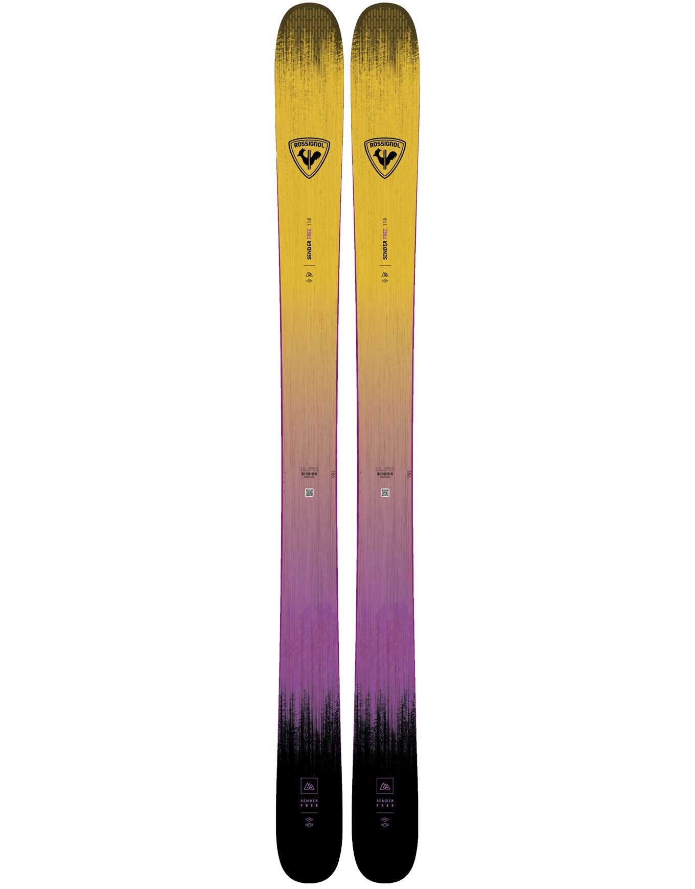 Le ski Rossignol Sender Free 118 2026, 118 mm au patin, conjugue rigidité carbone-kevlar, noyau peuplier PEFC™ et technologies VAS, Air Tip et Extended Core pour flotter dans la poudreuse, avaler les dénivelés et virer avec précision.