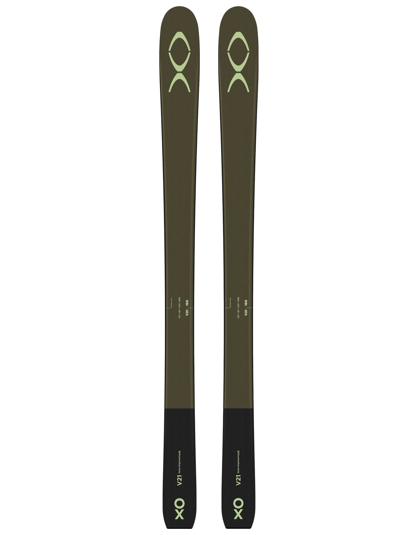 XO V21 2025 Tuscany Olive Green Tea, ski free-carve tout-terrain de XO Skis, allie légèreté et performance grâce à son double rocker, noyau bois/poplar-paulownia et semelle haute densité.